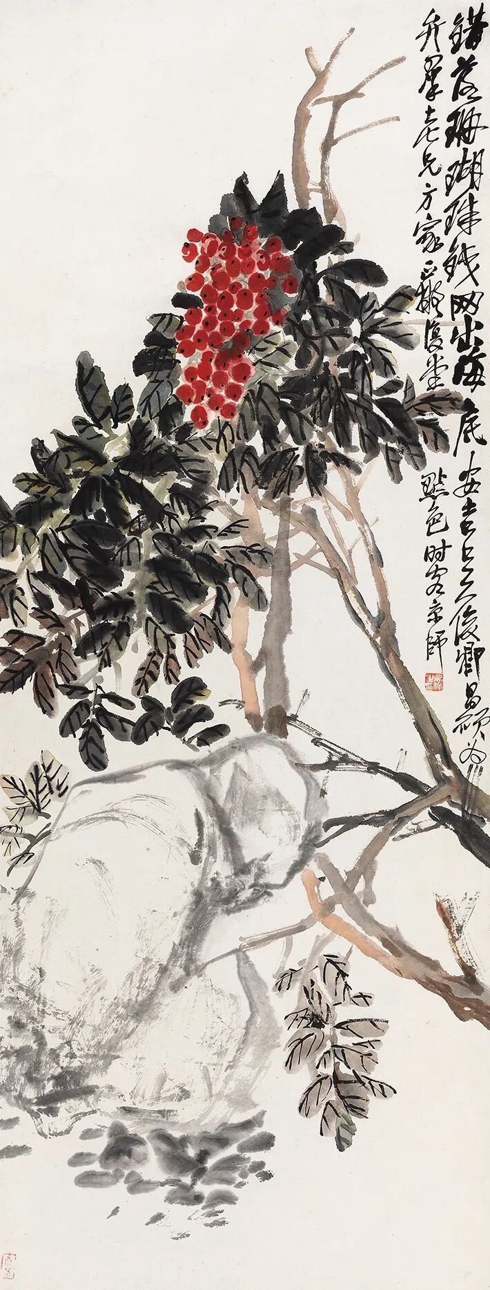 款识:错落珊瑚珠,铁网出海底。安吉吴俊卿昌硕为弁群老兄方家正。拟复堂点色,时客京师。