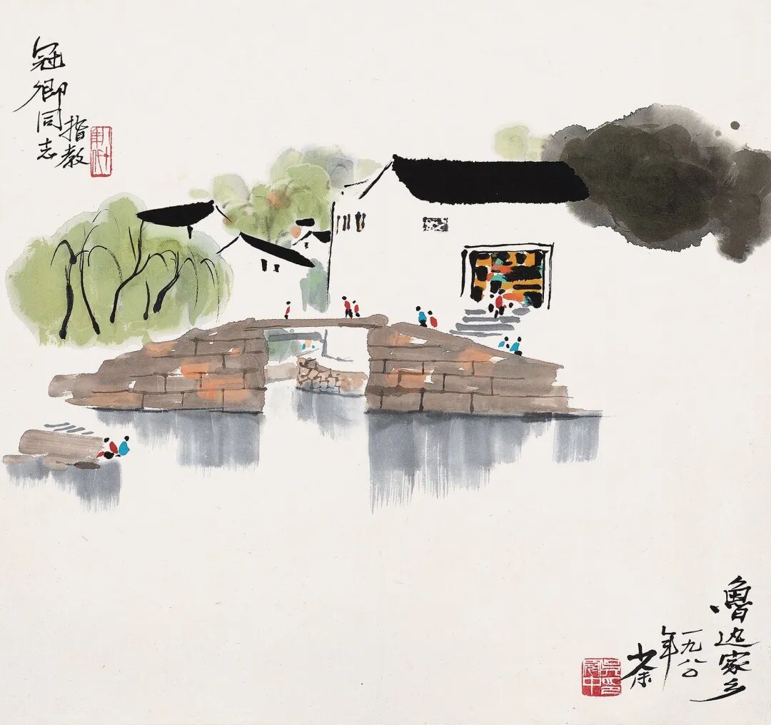 款识:鲁迅家乡。一九八〇年,荼。冠卿同志指教。