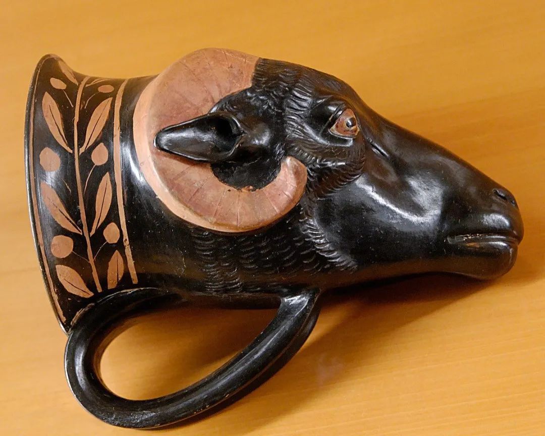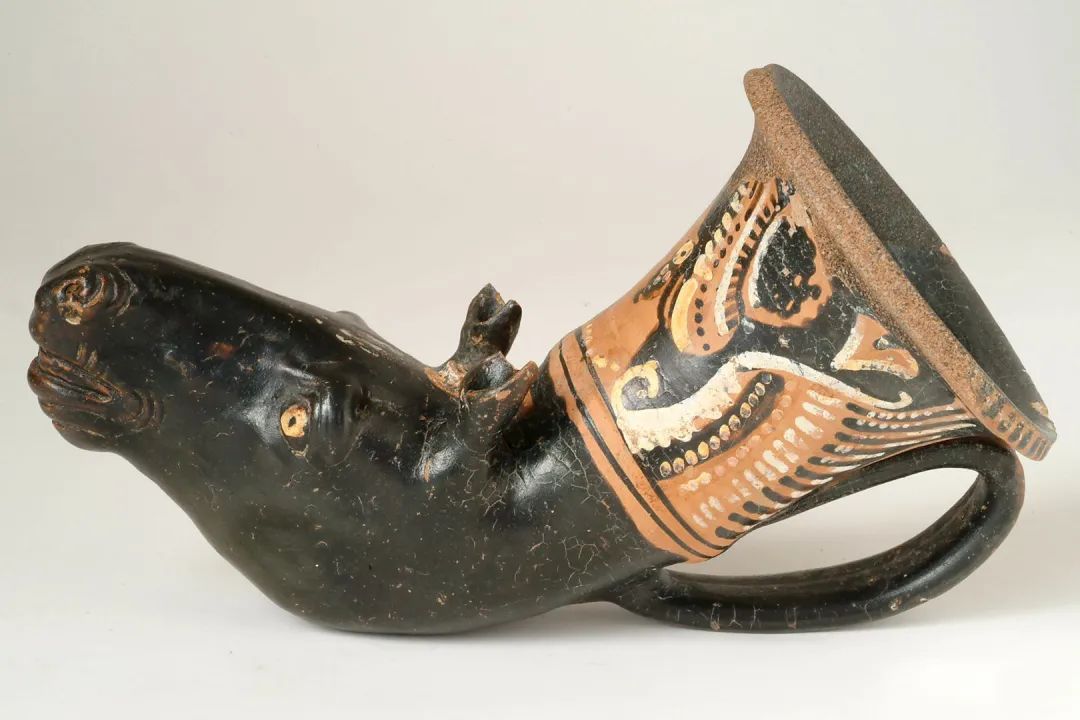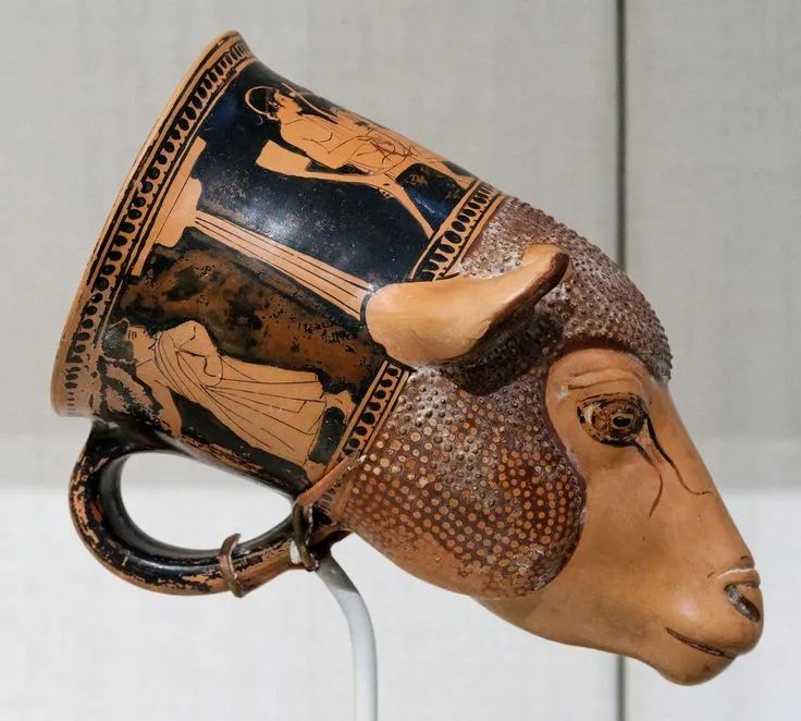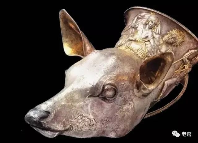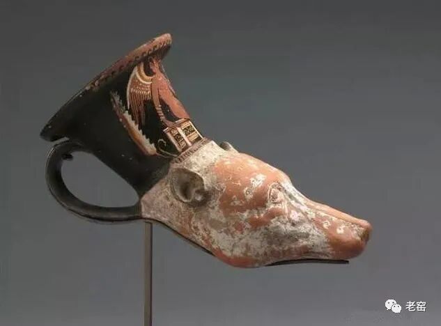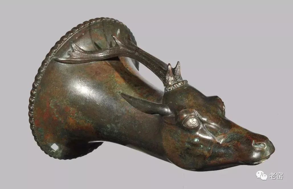 大英博物馆藏公元1-2世纪罗马制鹿头玻璃来通杯