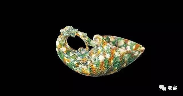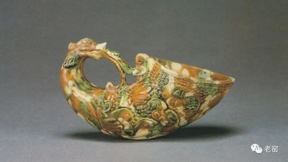 ▲唐代三彩象首杯 西安市南郊唐墓出土