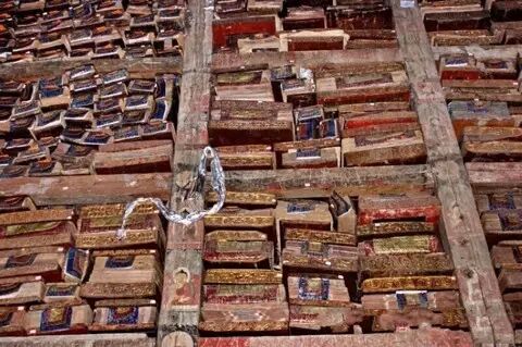 背景知识:萨迦寺的图书资料集中在三个地方,即北寺的“乌则”、“古绒”的藏书室、和南寺的大殿,藏书的总数约有84000函左右。