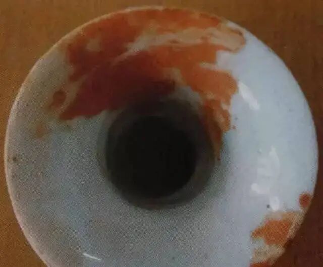 人为地用各种方法在器物表面做上“土锈”,但与真品自然土锈是不同的。真品土锈是器物长期浸埋在土壤中,是一种沉积在器物表面上的灰白色“土碱”所致。真土锈颜色不均匀,有斑斑驳驳的深浅变化,像小孩未洗的干尿布染上的痕迹。真土锈用刀片可刮掉,刮下的呈灰白色粉末状,而釉面不受破坏。做旧留下的各种痕迹,在高倍(40~100倍)的放大镜下观察均感到不自然。下面种种现象,很有可能是做旧或在烧制过程中故意做出的痕迹,是当今仿品的常见现象:3、明成化后的产品足端胎干涩,有人为的打磨、污染痕迹,无自然的“包浆”油腻感(图2);![]()