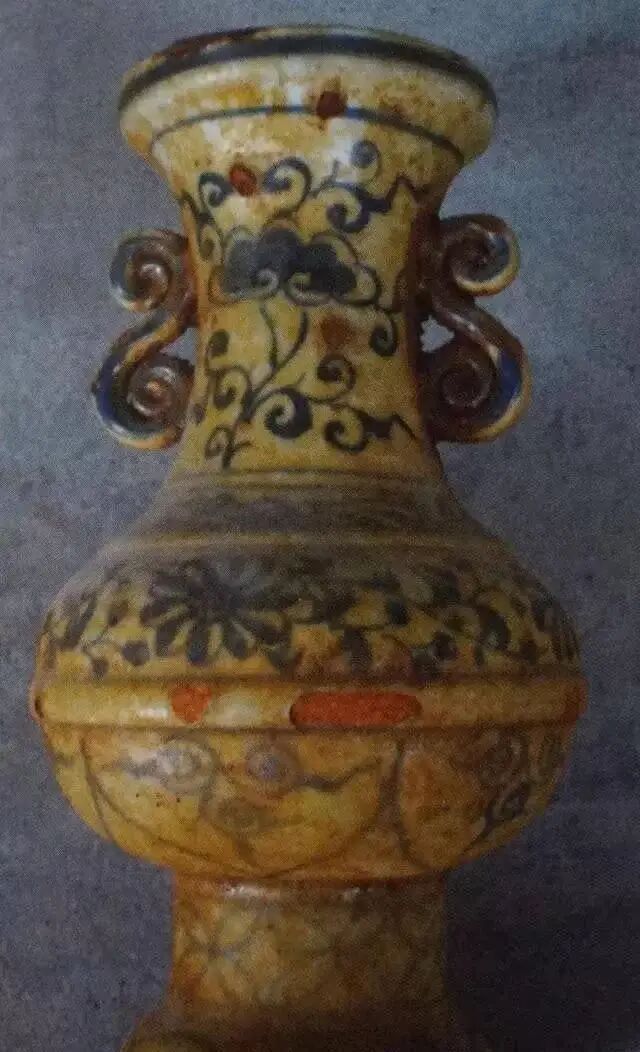 6、釉面有平行的、较深的划伤痕,并分布不均匀,不易碰到的地方划伤痕反而多;7、土锈呈均匀的黄泥色或灰色,用胶水调泥粘上的土锈,用开水可洗掉;用泥等调铅熔剂经800°C烤烧上的土锈,会侵蚀釉面,用刀片刮不干净(图5);真土锈是土碱积淀形成的,仿造的土锈没有这种感觉亦无土气味;![]()