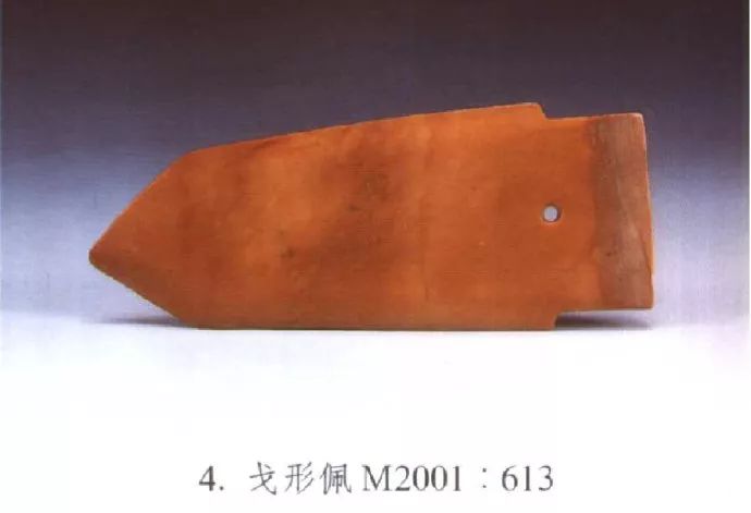 在玉质工具中,如青色饕餮纹玉斧,羊脂白玉钻等,也均采用和阗玉制成,无任何使用痕迹,可见这些玉质工具只是作为一种标志礼玉使用于某种特定场合。在葬玉类中,该墓出土的两件玉握最为典型:左手握为和阗青白玉,呈圆角方管状,周身饰8周弦纹,两端分别饰4只蝉纹,为商代遗物;右手握为和阗青玉,呈圆管状,周身饰旋转龙纹,是西周时期的典型器物。