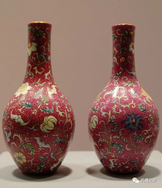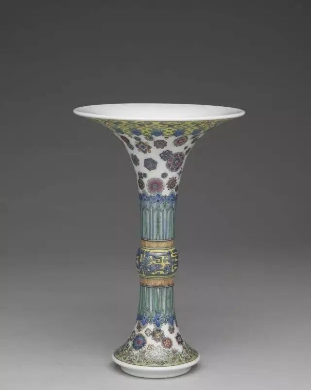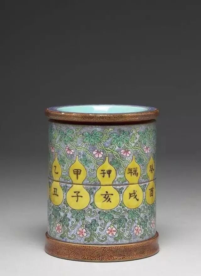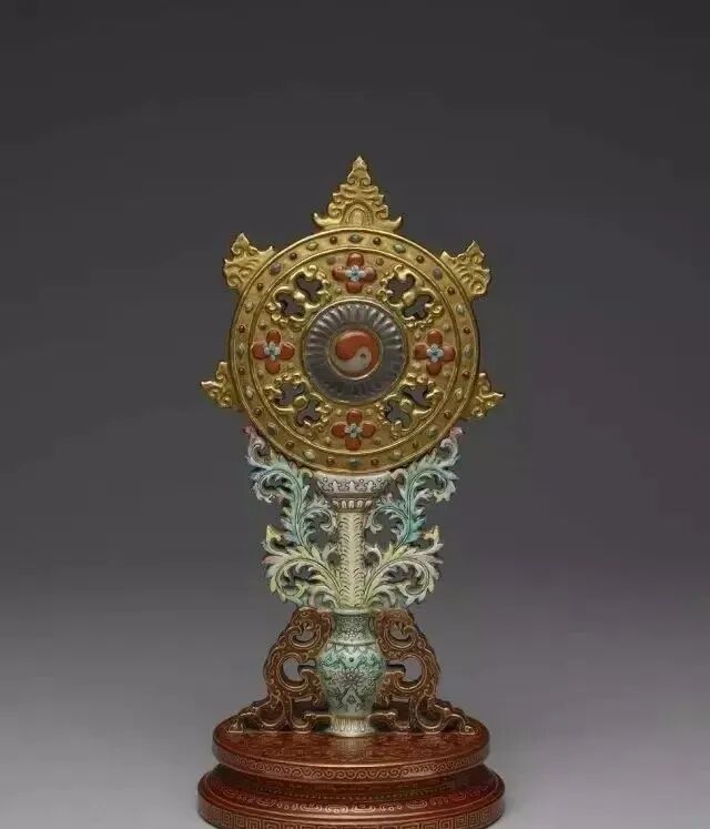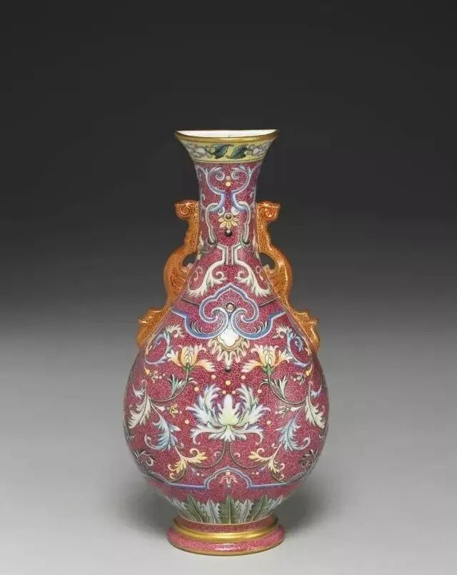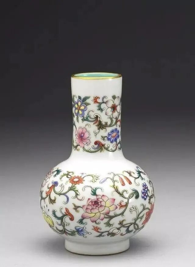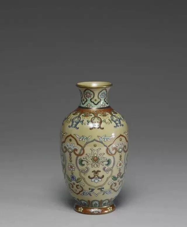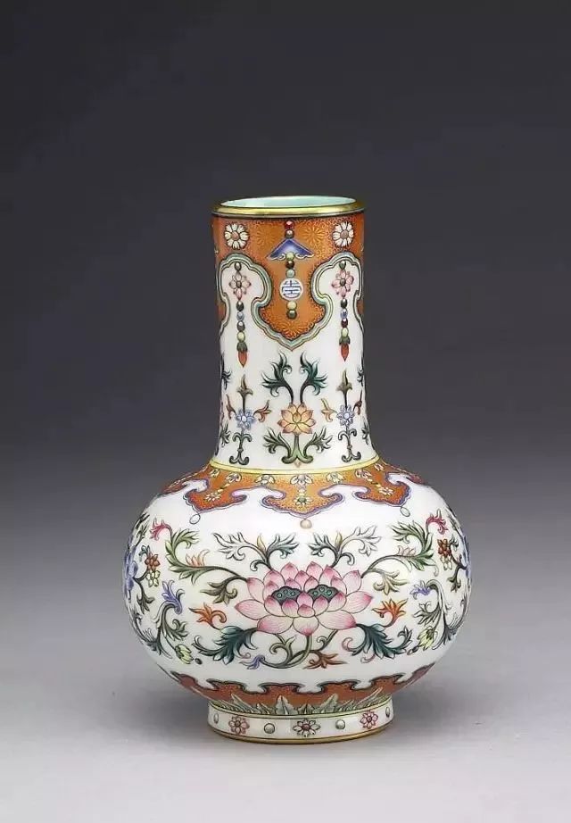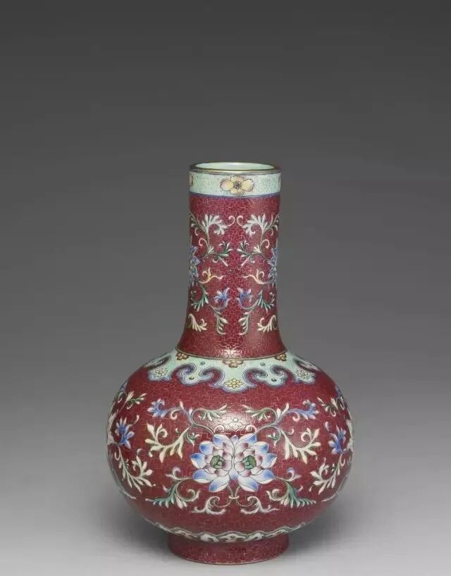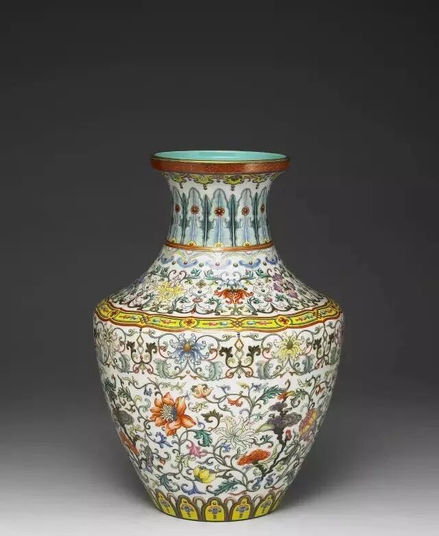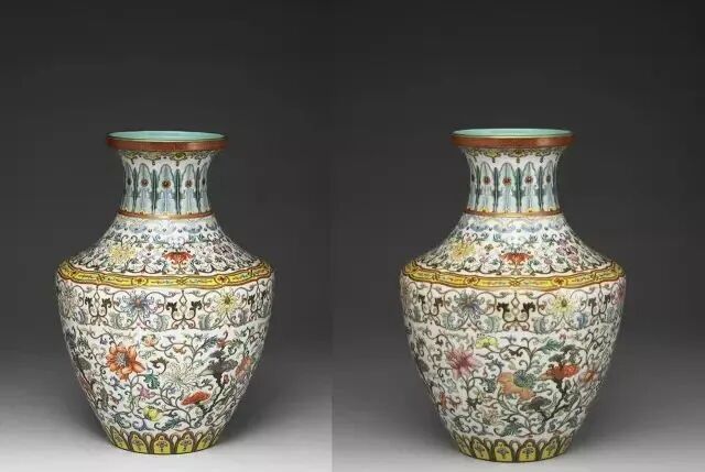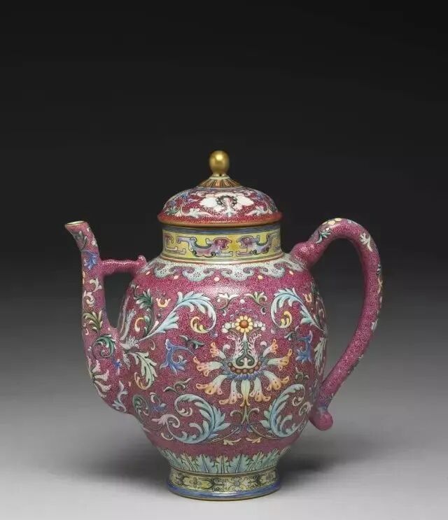 珐琅彩色:色彩鲜艳柔和,很少为纯色,多为粉彩型偶合色。色种多,在同一件器物上可以出现七八种颜色,有时甚至多达十余种。