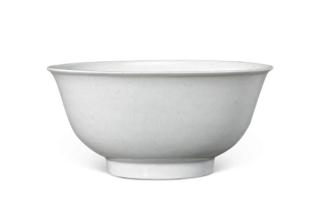 备注:北京华辰,2004年5月13日,编号0132展览:景德镇御窑博物院、保利艺术博物馆,“青花的故事——景德镇御窑遗址所出与海内外珍藏元明青花瓷器对比展”,北京,2022年6月20日-7月9日估价:RMB 5,000,000-8,000,000明永乐一朝,宫廷重白瓷,属永乐重要瓷品,其釉色乳白,温泽柔和,于白瓷中形成独特风格,谓之「甜白」。甜白釉器,重凝润丰厚,莹亮光致,所用瓷土,提炼精纯,铁钛含量极低,釉料主要由釉石制成,而不用釉灰,故成器明显有别于其他时期瓷品。「甜白」一词,最早见于黄一正万历十九年所撰之《事物绀珠》,书中收录各类名茶,记载「永乐、宣德二窑内府烧造,以鬃眼甜白为常」,并以「白如凝脂,素犹积雪」述之(载于《景德镇珠山出土永乐宣德官窑瓷器展览》,香港艺术馆,香港,1989年,页35及中国国家博物馆编,《中国国家博物馆馆藏文物研究丛书瓷器卷:明代》,上海,2007年,页13)。景德镇明代官窑遗址,出土永乐之品,多为甜白釉瓷(景德镇市珠山中路东区两相连永乐堆积层,逾98%),然而甜白器传世者较青花瓷更罕,可见此类器烧制极其艰巨,必严格择选,至釉色完美者,方能入贡;若稍有不善,则弃于窑场(见香港,1989年,前述出处,页19)。明廷重白瓷,应与永乐帝深崇藏传佛教有关,时见有僧帽壶、高足杯等带有藏传佛教风格之器形,另见有南京瓷塔之无数瓷砖,当中逾二千块于窑址出土,均可为左证。然而,当时官作白瓷并非仅作礼仪佛器,其形制甚广,当中见有异国器形,如仿中东伊斯兰金属器而制,其中部分取材、用途至今仍有待考究。除此外,另见有玉壶春瓶、梅瓶等中式款例。永乐时期,梅瓶应仍作酒器,而非插花之用。永乐御窑烧造各式梅瓶,纹饰器形不一,中外皆盛行,但存世甚罕,其例可见于两岸故宫博物院收藏、伊朗萨非王朝及土耳其奥斯曼王国皇室典藏。梅瓶之形,经景德镇不断研烧,自元代起至明初洪武之时,已多有改变。从窑址出土残品所见,永乐、宣德两朝又曾创烧两类新式,另有一式,孤例现存上海博物馆。本品器形秀雅不凡,备受推崇,无疑作为典范,常见于白釉、青花等器。![]()