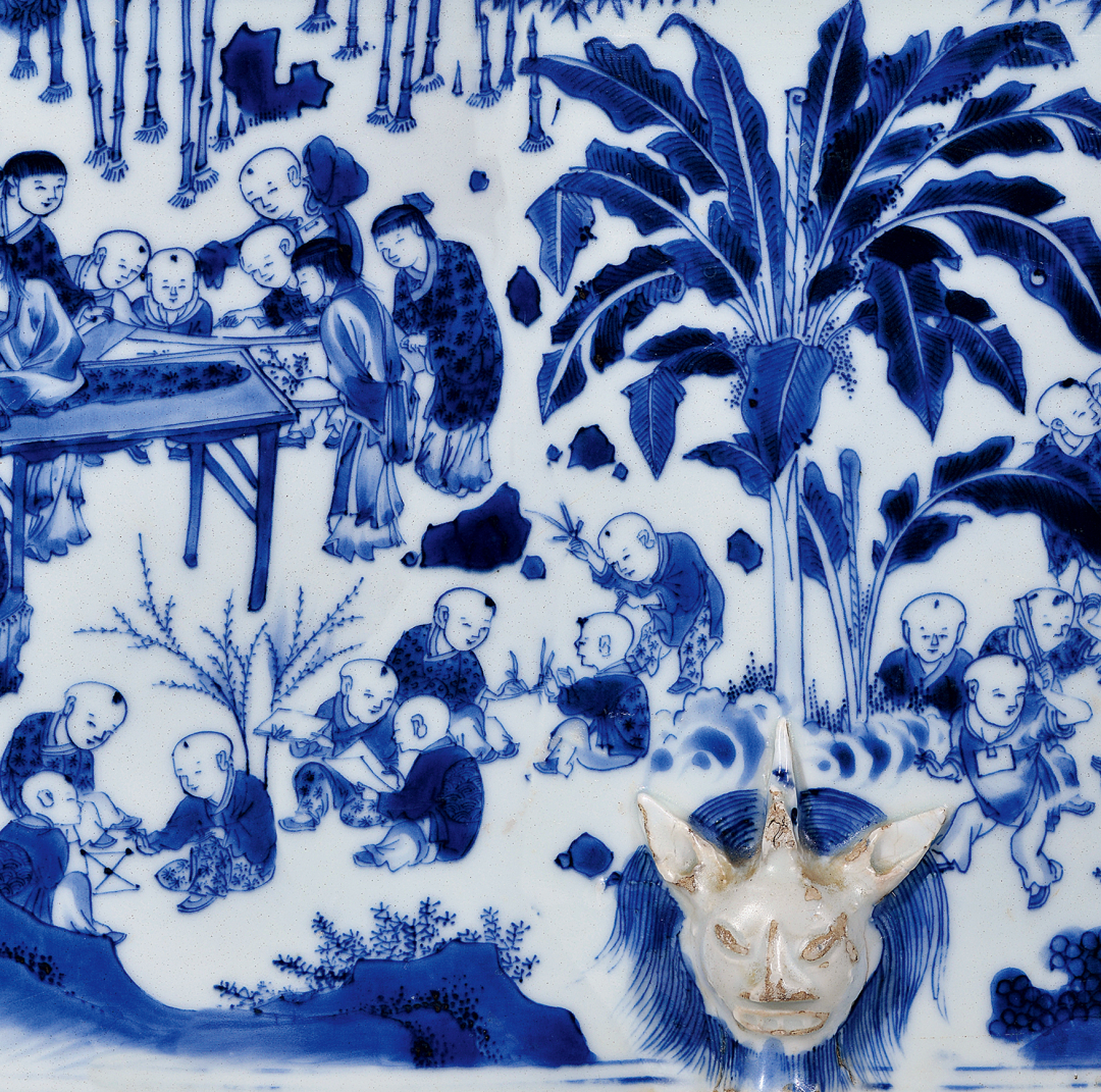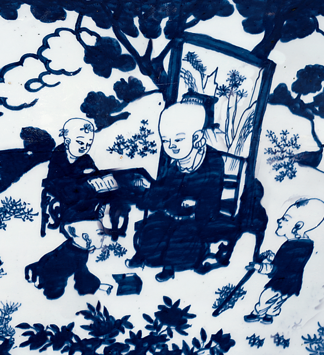 自成化御窑以降,青花用料的国产化与胎釉质地进一步提升使得“青花”愈加富于中国本土艺韵。自正德年间起 ,景德镇开始接受葡萄牙王室青花纹章瓷订单。在欧洲人主导的“大航海时代”,青花瓷器为欧洲王室贵族的狂热追求,嘉靖、万历间大量外销欧洲,进行了双向的文化交流。明末清初的17世纪晚期,每年行销欧洲的中国瓷器以数百万件计,尤其“青花瓷”成为欧洲上流社会宫殿居室的标志性陈设,是财富与品味的象征。至18世纪,欧、亚、非、美各大洲均有青花瓷器的收藏与传承。
