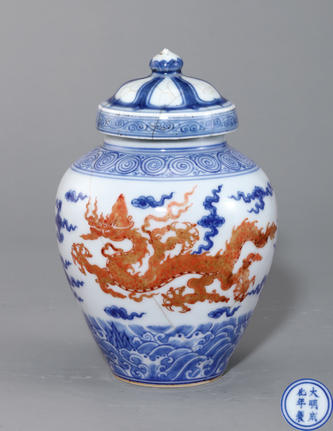 明宣德 青花莲托八吉祥罐展览:景德镇御窑博物院、保利艺术博物馆,“青花的故事——景德镇御窑遗址所出与海内外珍藏元明青花瓷器对比展”,北京,2022年6月20日-7月9日估价:RMB 2,000,000-3,000,000
