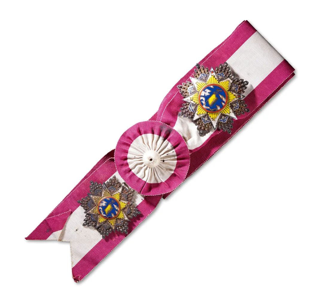 民国时期一等荣誉复兴勋章一枚,带原绶带。