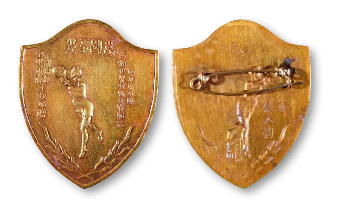 1959年参加世界杯篮球赛纪念金章一枚,背刻:领队钱大钧