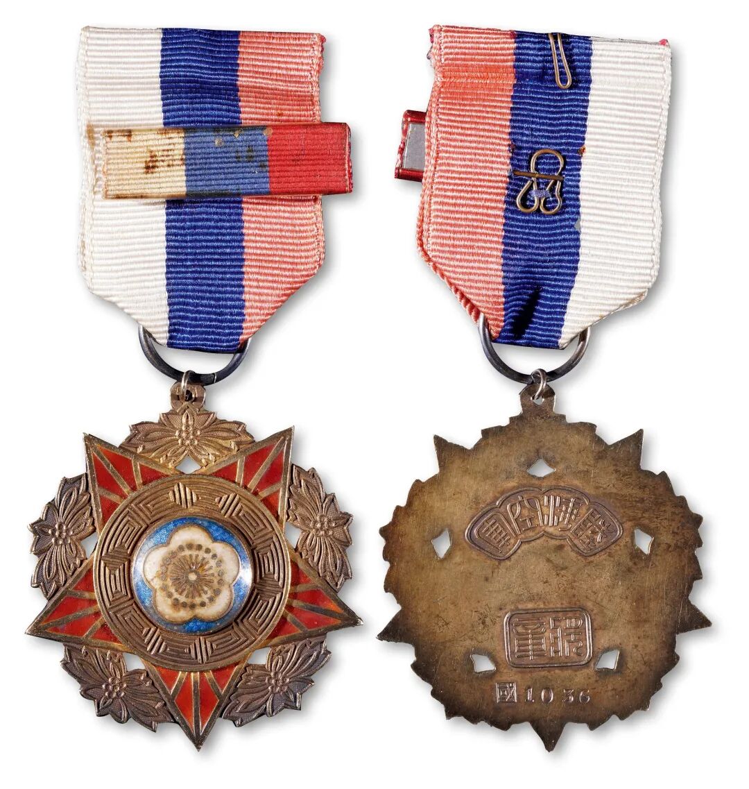 此章於民国十八年(1929年)八月十五日颁行,为通用最高奖章,颁授给军人於战时平时有功绩,或学术技能有专长者。其中心图案为梅花,代表国家,花环以万字图,表示时间久远,其外为五角星代表光明。少见。