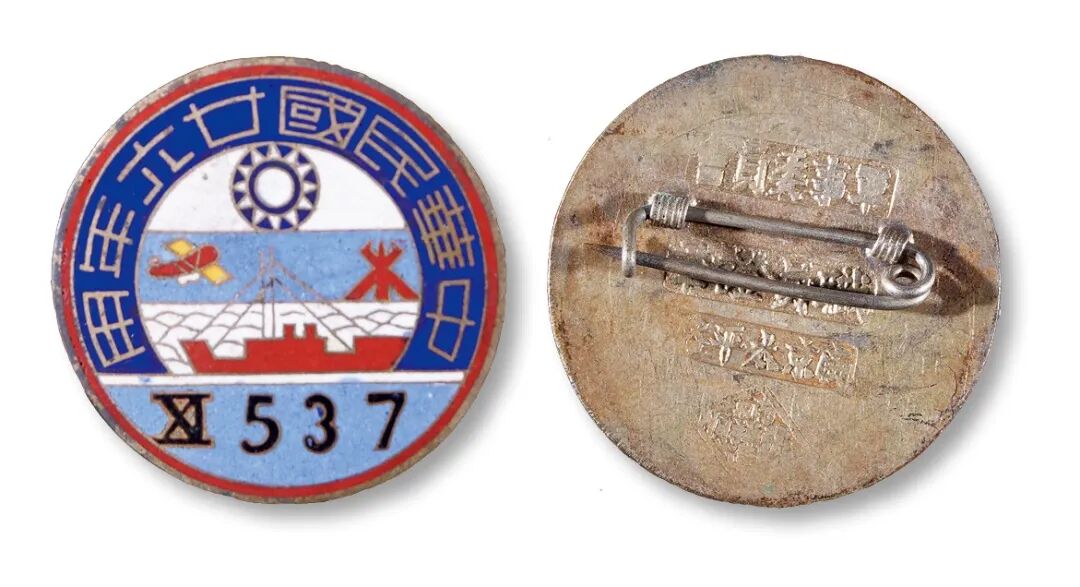 民国二十六年(1937年)军事委员会职员证章,编号:XI537,背南京张祥顺造。