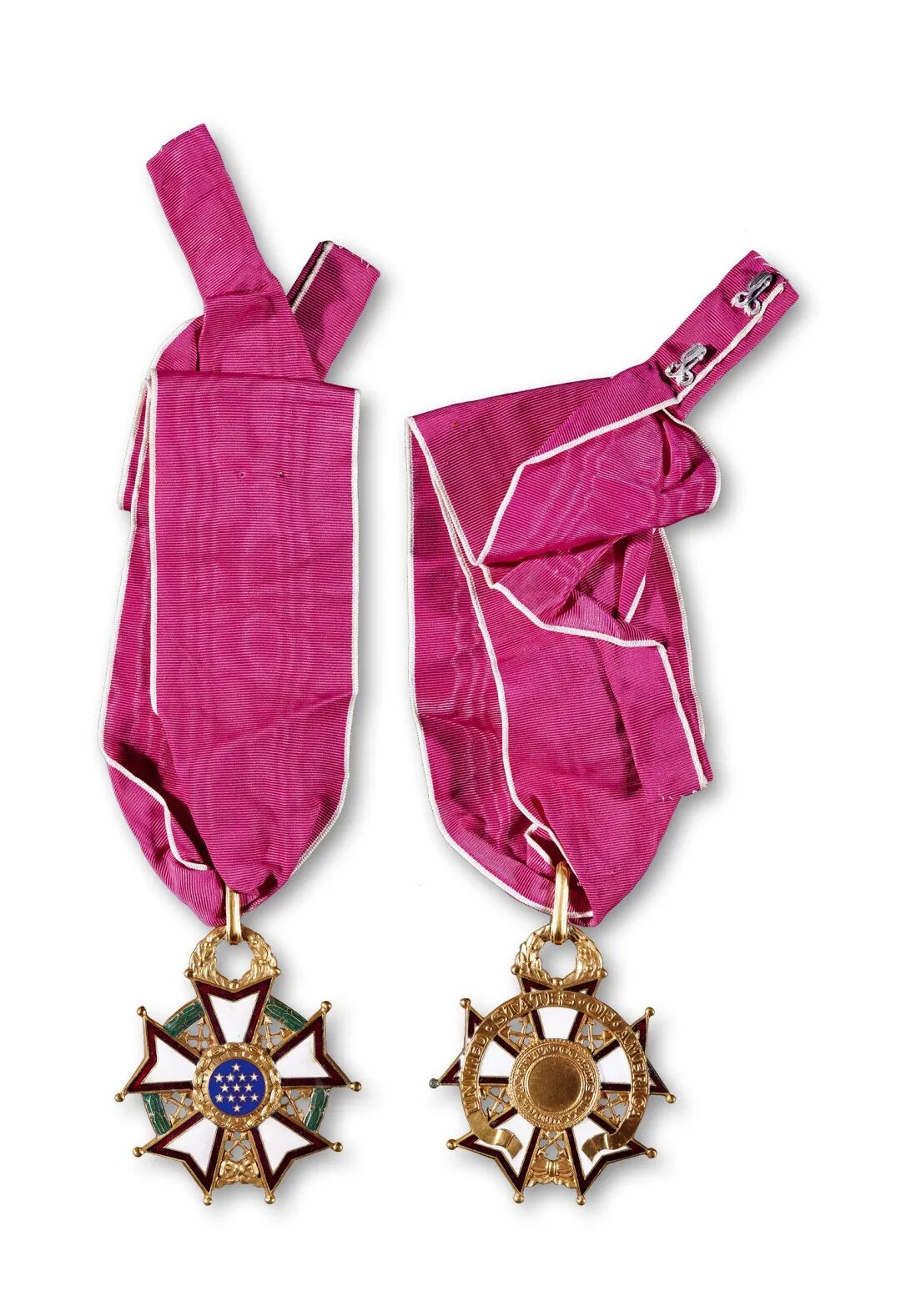 民国时期美国功绩军团勋章一枚,带原绶带。正面为珐琅质。
