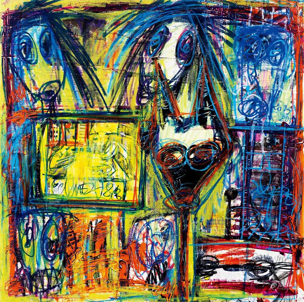 阿布迪亚曾经在2011年因为阿比赞总统选举时爆发的动乱而呆在一个地下工作室,一些创作中的灵感来源于这段经历。《无题》创作于2012年,作品由许多醒目的人脸涂鸦,以及鲜艳到浑浊的色彩构成。阿布迪亚很好地融合了北美波普艺术以及抽象表现主义艺术,以大尺幅的涂鸦作品强势地吸引观者的注意力。