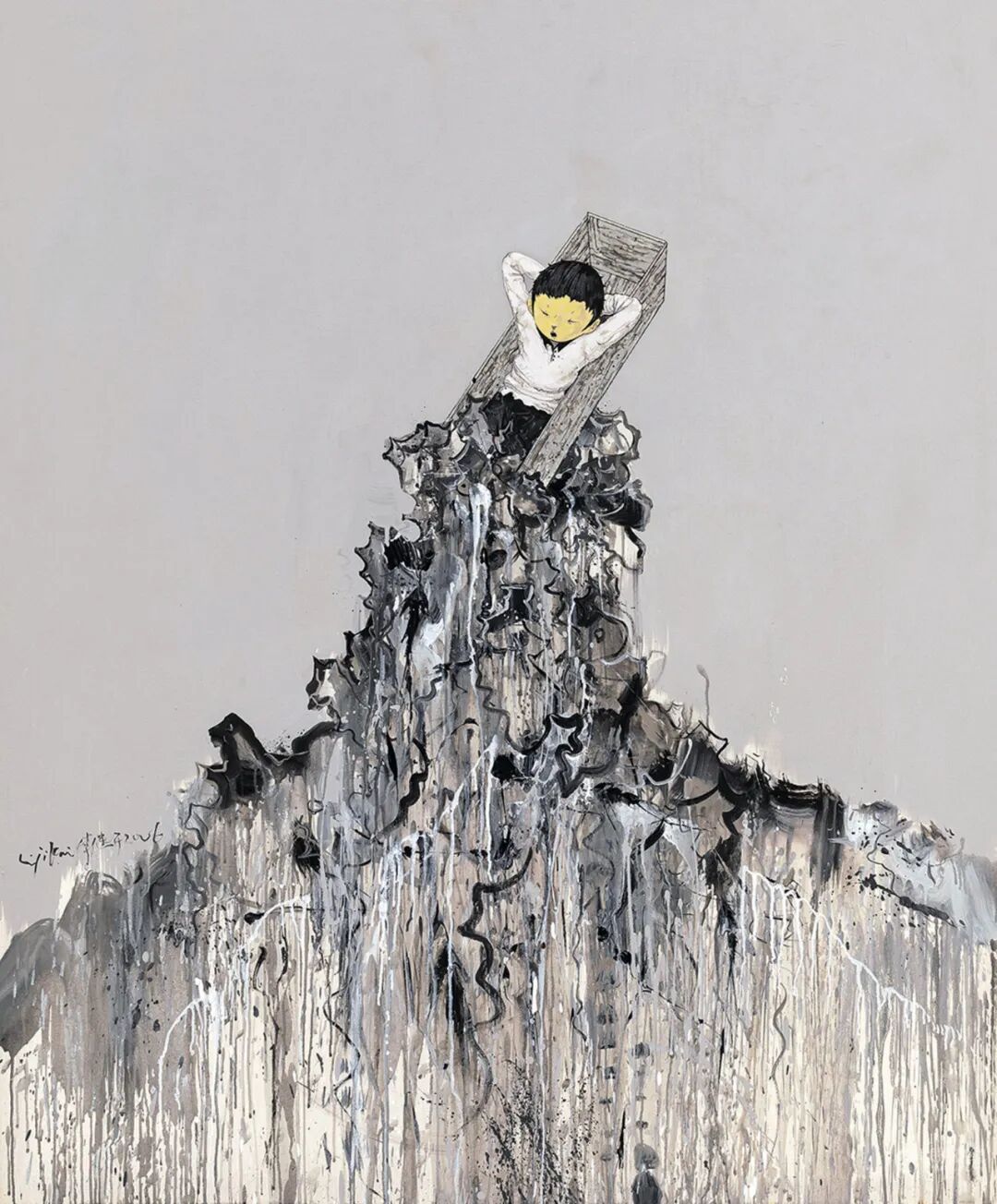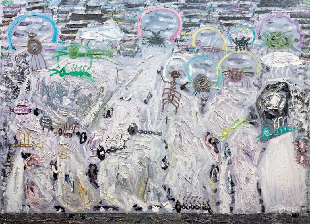 本次上拍的《发光冻僵的虫子》、《画家》,是欧阳春迁居北京最初几年间的作品,是艺术家将过往积攒数十年的能量肆意抛洒的两件真挚之作。