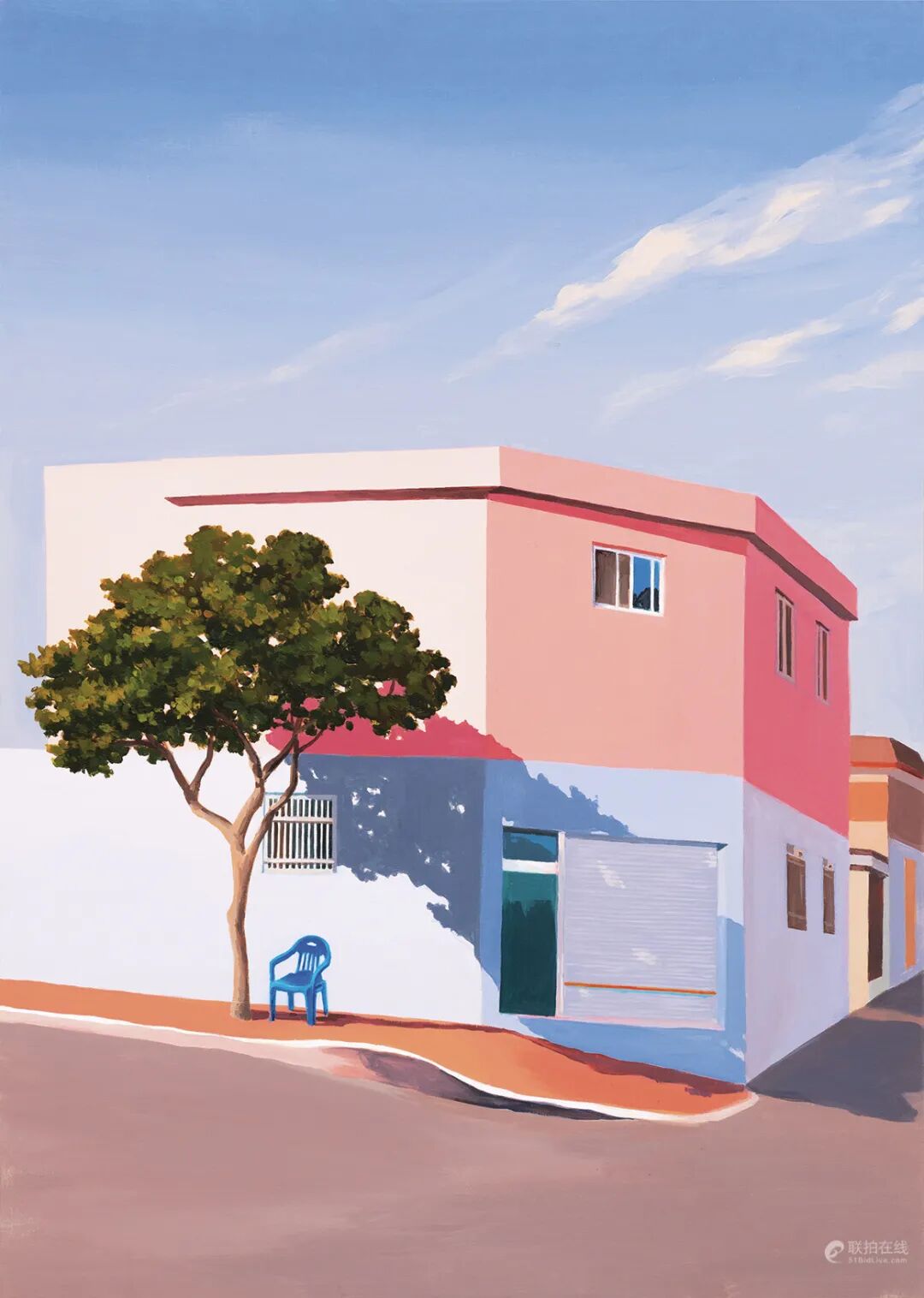 伍德自述,“你可以将我的绘画看作是一部视觉日记或是个人历史。”他的绘画带着个人内心情感的温度,以一种半抽象的艺术语言将几何形状、图案、与色彩堆砌在画面。