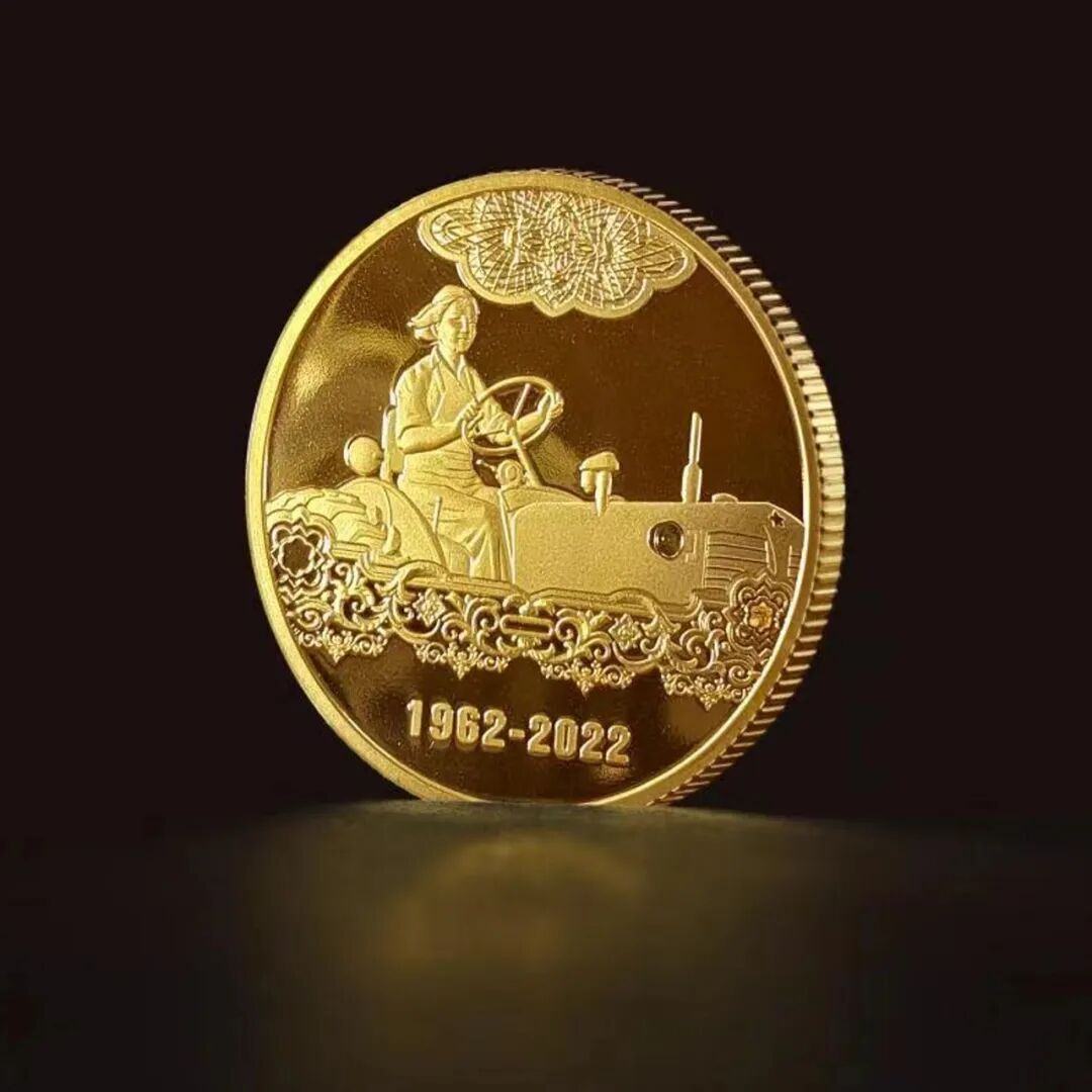章面为第一代女拖拉机手——金茂,它代表着我国勤劳勇敢的劳动人民和男女平等的价值观念。
