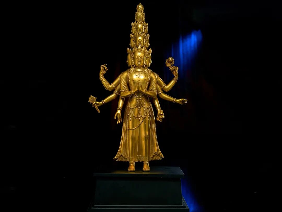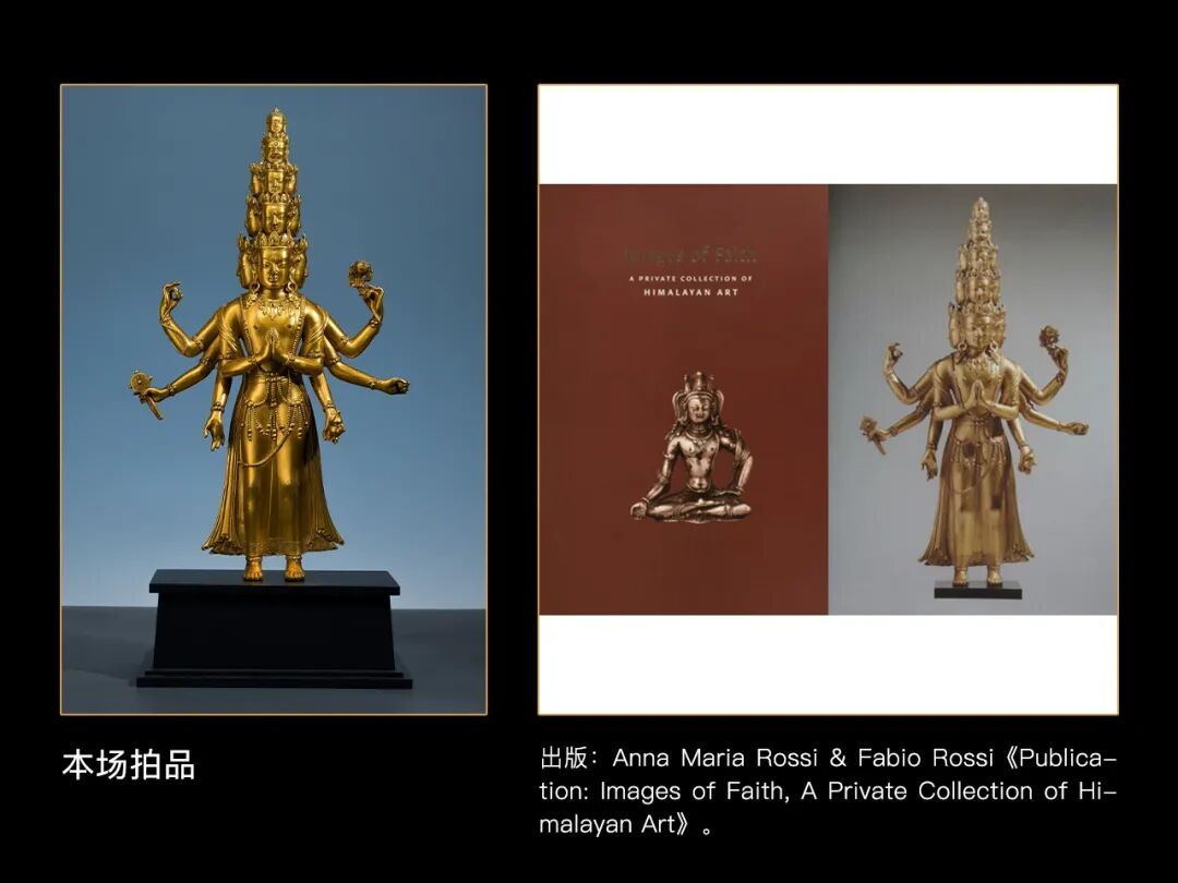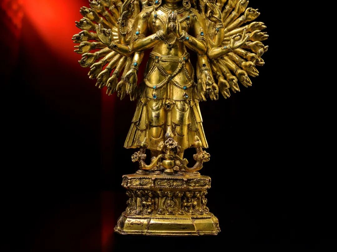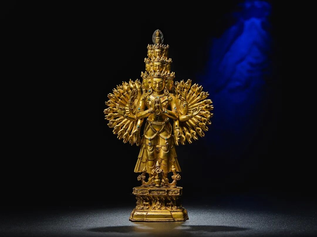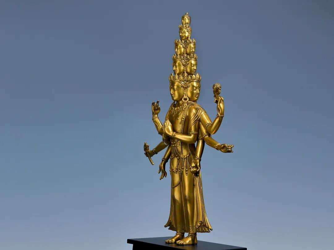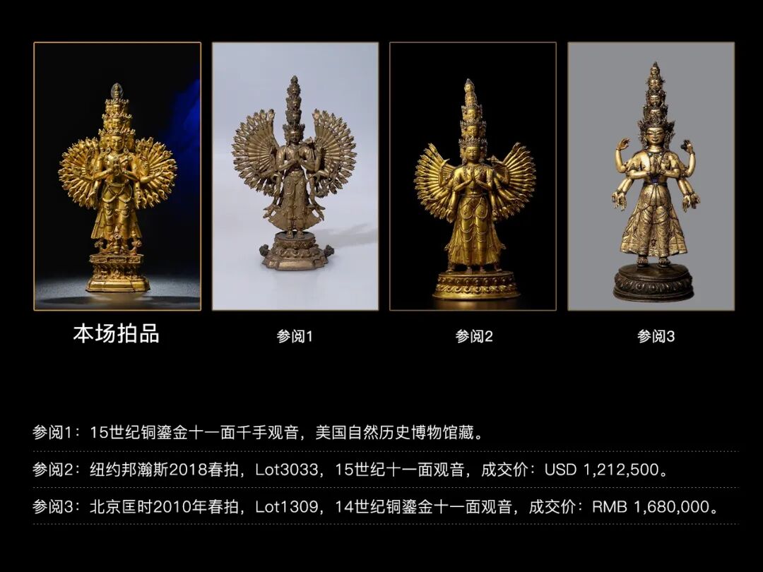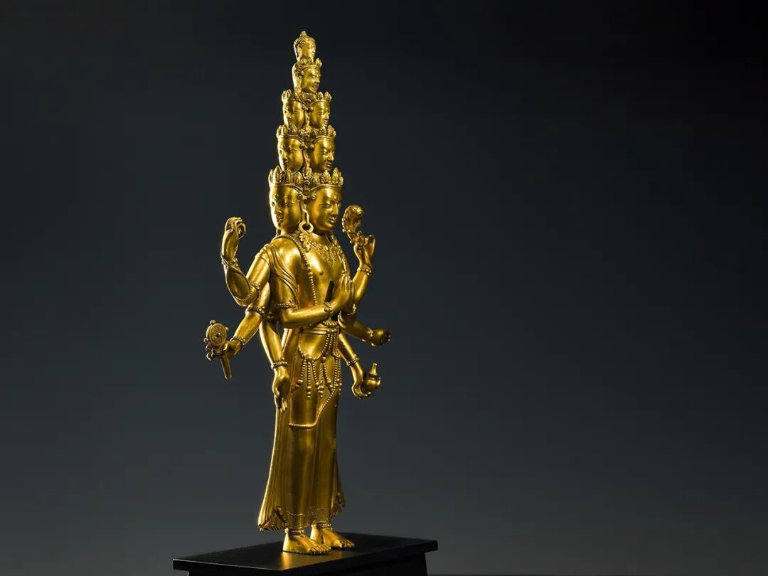 西藏地区15世纪的十一面千手观音非常罕见,存世寥寥,而此尊金色悦目、品相完美、华丽至极,相较于美国自然历史博物馆收藏的十一面观音,本件拍品无论其精美绝伦的工艺表现,还是华丽的装饰风格,都更胜一筹。