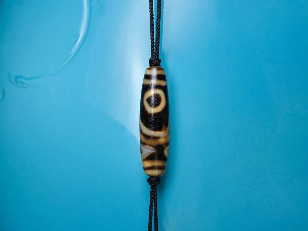 Lot 23 千年至纯 仅见大成就者神山圣湖禅修秘境图 老天珠尺寸:对孔宽约40mm 直径约11.5mm 重约7g天珠代表着庄严、富足、具得、高贵与优雅,是藏族人心中最珍贵的宝石。每颗千年至纯天珠都蕴含神秘的加持力,自古既是最神秘的佛门圣物,非佛缘深厚福报巨大之人难以见之、得之,自古便有一珠而易良马五十匹之说。至今,藏族朋友们仍然可以将古老纯正的天珠拿到西藏人民银行或者拉萨市八廓街城市信用社做金融抵押贷款,甚至还能直接当做现金来买房子、买牦牛。此颗至纯天珠图腾目前仅见,存世仅此一枚,价值连城!初看这颗天珠,无序的线条可能会让您毫无头绪,但是仔细观察后,在脑中将天珠展开,一幅神秘莫测的禅修秘境图跃然眼前,画面中一位大成就者于神山的山洞中闭关打坐禅修,身后是他的宝匣,身前是神山脚下的佛眼形圣湖,天空中的太阳散发出圣洁的光辉,整幅画面隐秘而朦胧,展现出宁静悠远的神秘主义气息。
