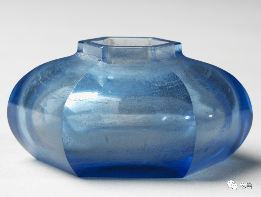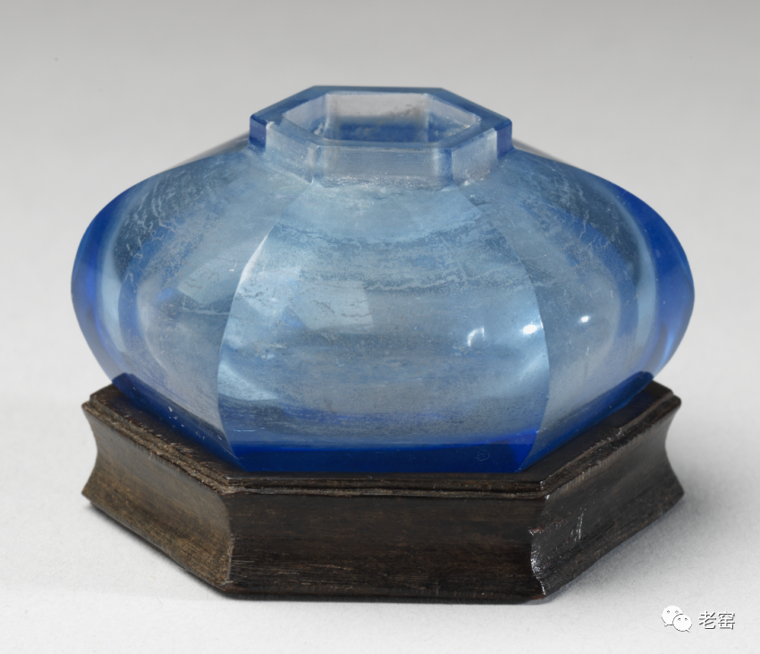 清雍正 蓝玻璃六方水盂(正面) 台北故宫博物院馆藏