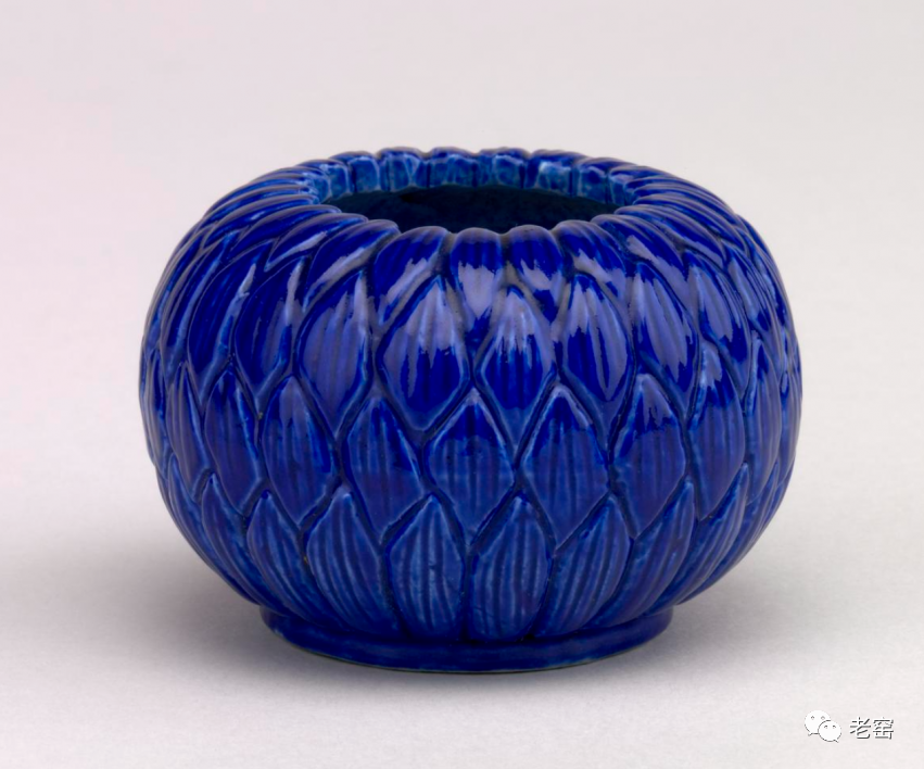 清 蓝釉莲瓣形水盂 大英博物馆藏