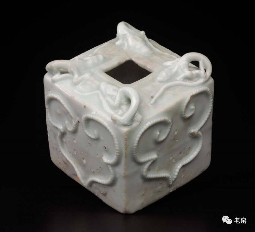 元 青白瓷浮雕螭龙纹四方水盂 美国波士顿美术馆藏