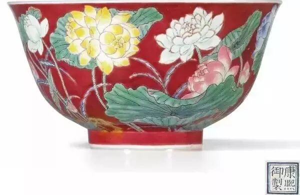 乾隆帝的爷爷康熙也喜欢喜庆一点的碗。一只清康熙御制胭脂红地珐琅彩莲花图碗曾亮相2013年香港苏富比春拍,先以4000万港元起价,经过几轮竞价,最终以6500万港元落槌,虽然低于此前预计的7000万港元成交价,但还是刷新了康熙时期瓷器拍卖的记录。