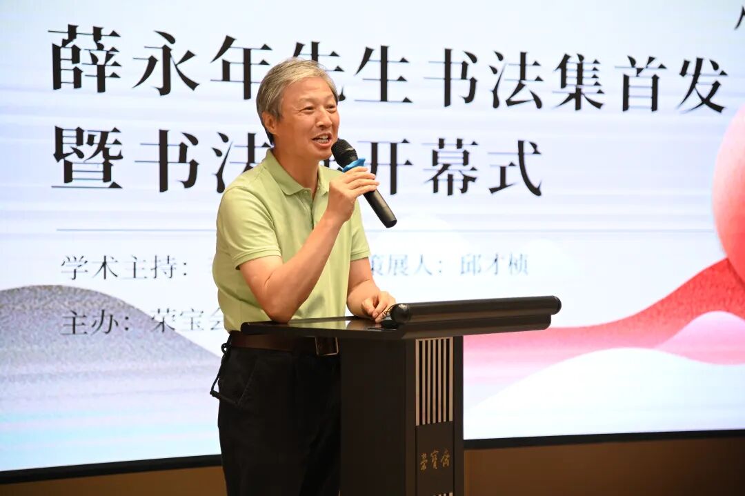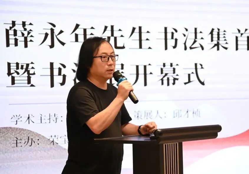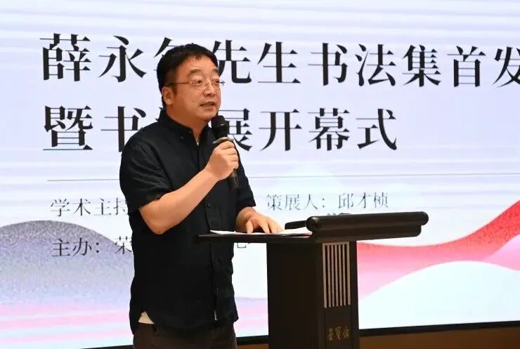荣宝斋出版社副总编辑王勇先生作为主持人,首先发表致辞:“薛永年先生的这本书法集,是荣宝斋出版社策划的新选题系列第一本“艺术学术名家系列丛书”,强调了艺术创作与艺术研究的内在联系,同时也展现出学者的艺术风采,抑或是艺术家在学术上的严肃探索。能有幸邀请薛永年先生为这个系列的开局首发,是我们的荣幸。有薛先生在,也基本确定了“艺术学术名家系列丛书”系列的品质、定位、以及未来延续的方向。”