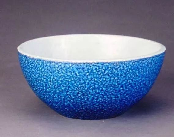 采用吹釉法施釉,所以又名吹青。蓝釉中自然分布着白色的斑点,如同雪花洒落,故名洒蓝,又称雪花蓝、青金蓝、盖雪蓝。