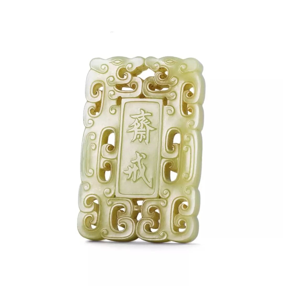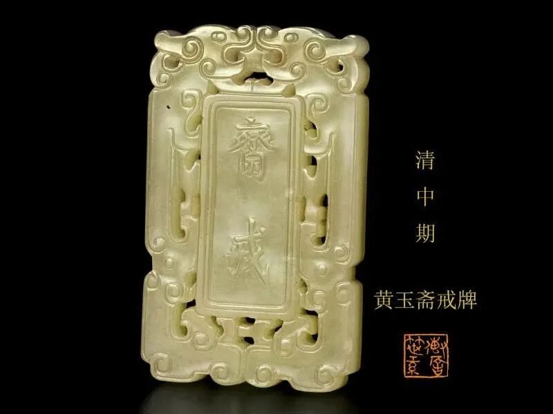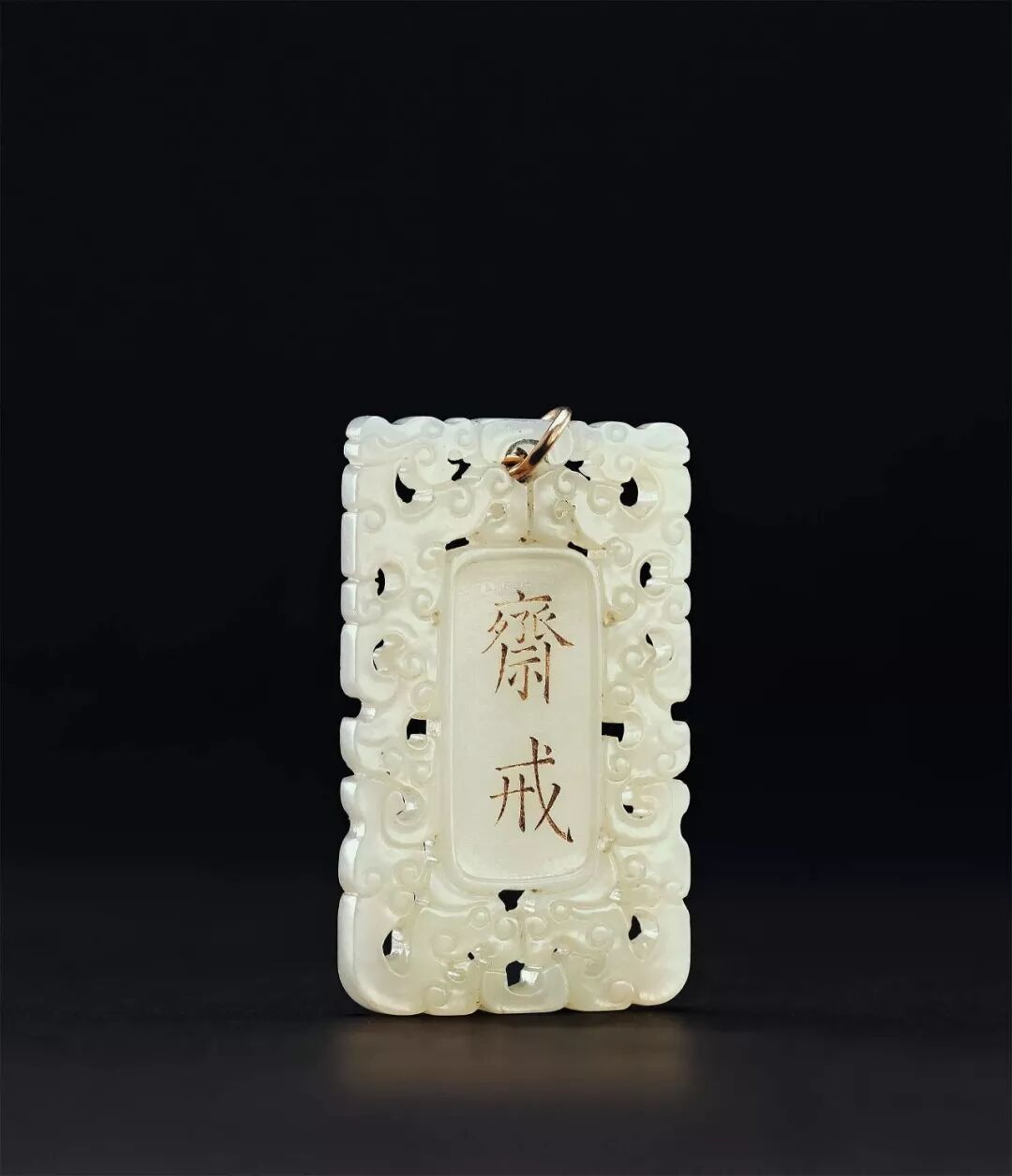 皇室成员佩带斋戒牌均出於清宫造办处,其材料也分多种,而且经过能工巧匠的精心制作,都成了随身携带的心仪艺术品。