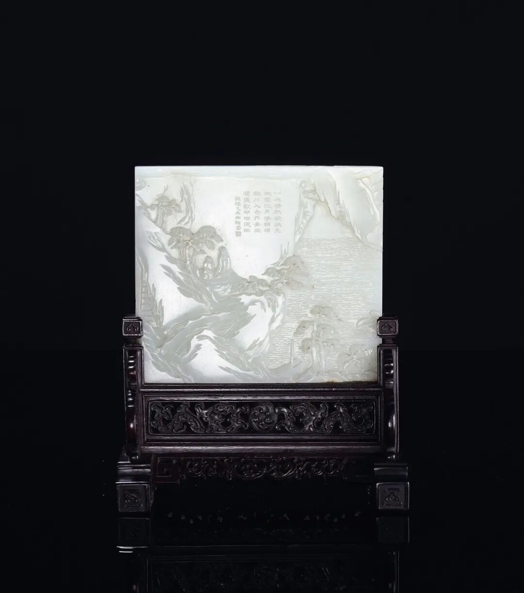 清乾隆 御制白玉御题诗春江花月夜插屏