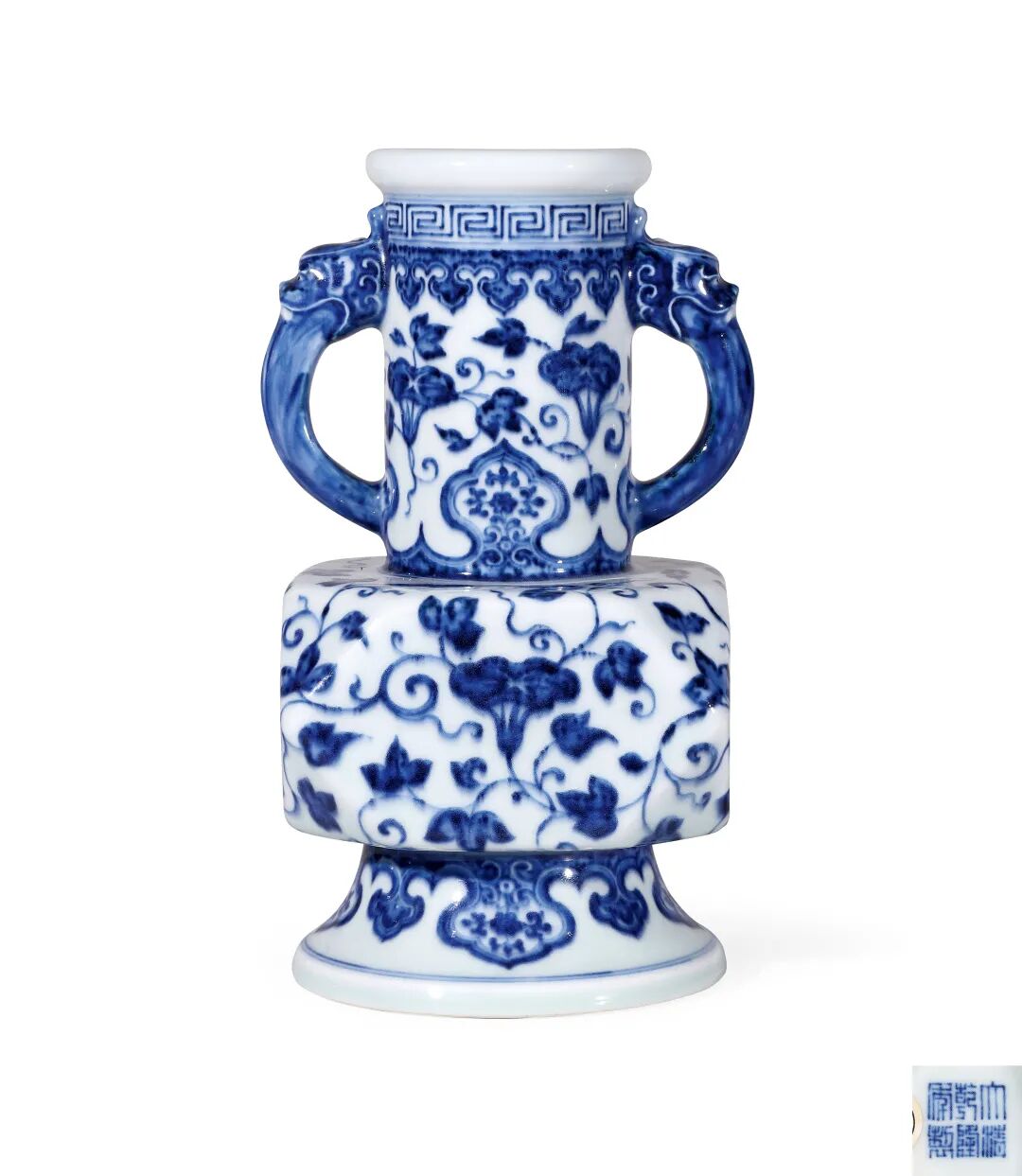 清乾隆 青花缠枝牵牛花纹八方兽耳倭角尊