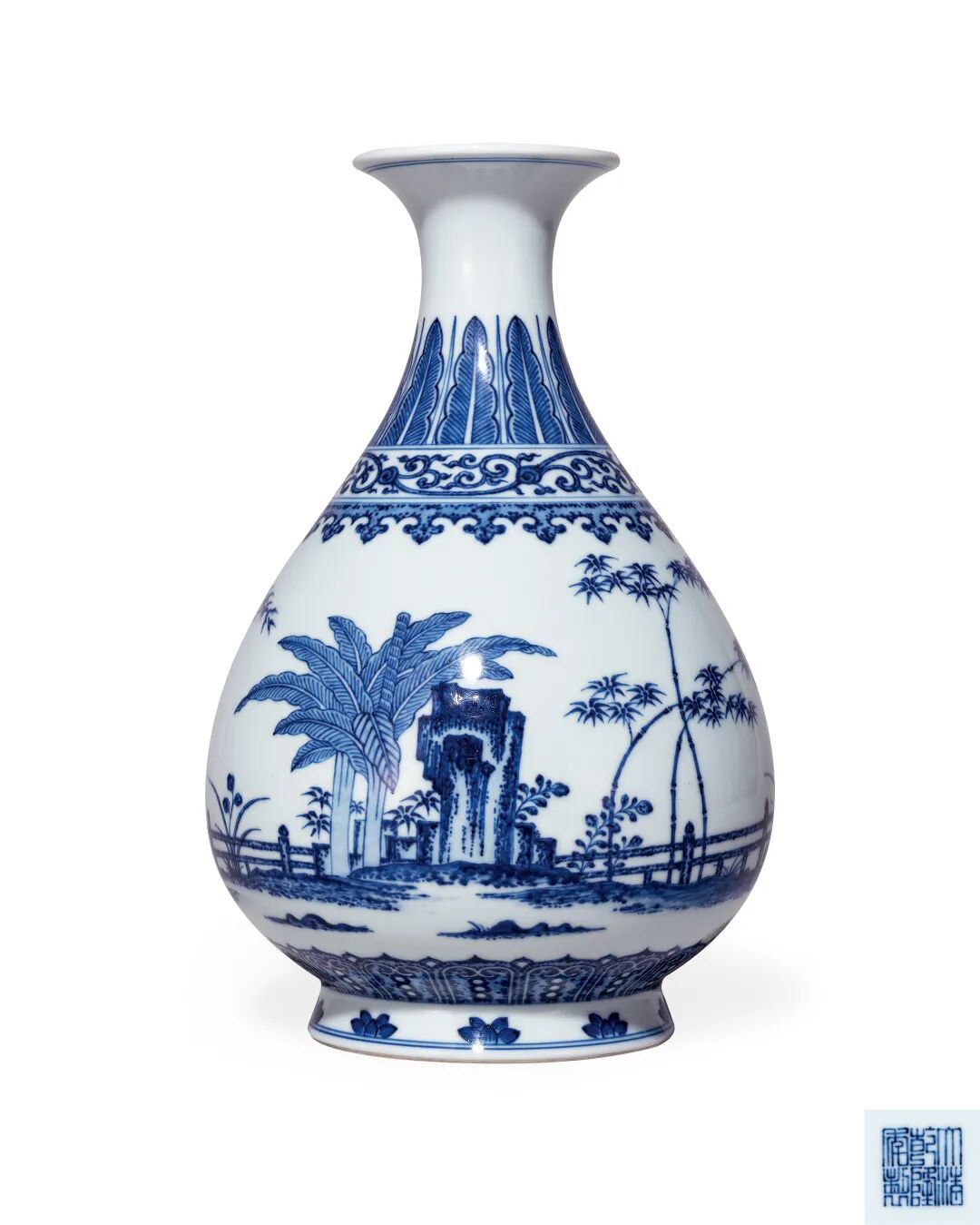 清乾隆 青花竹石芭蕉纹玉壶春瓶