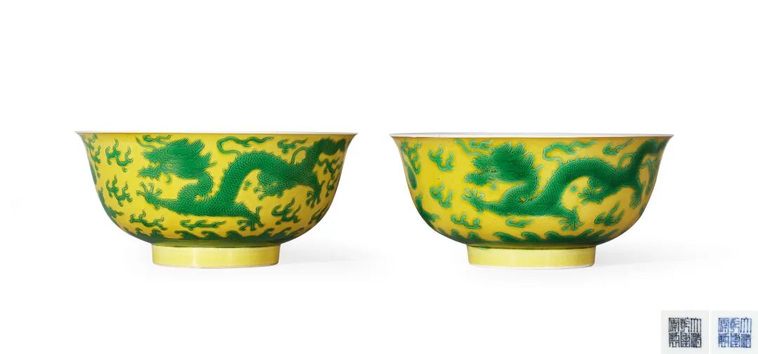 清乾隆 黄地绿彩云龙赶珠纹碗(一对)