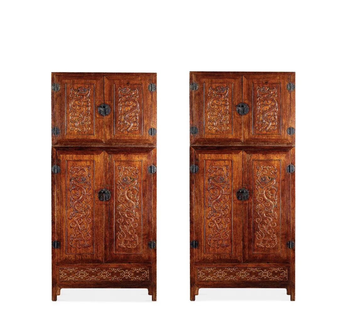 明十七世纪 楠木嵌黄花梨黄扬木顶箱柜(一对)