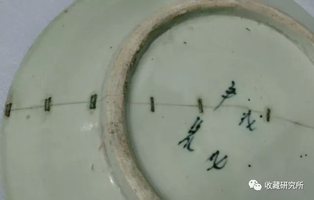 88、次火:又叫欠火工。即窑火温度不足。因欠火,会使瓷器相应地出现差异,如色彩,硬度,瓷声等方面。常有人将次火瓷当仿品判断。另有工艺设计的低温瓷,也会如次火瓷。例如黄土胎的北宋哥窑,若是温度高了就变成灰胎了,也就失去黄土胎的神韵了。完整的次火瓷是很少见到的。其自身半生不熟的,易损。如遇残器,一看断口就明白次火了。89、补生粉:瓷器有缺陷后,用瓷粉修补之,曰“补生粉”。或再次入窑烘,但因温度不高,还是曰补生粉。若是高温修补,则曰“窑修”,或“窑补”。可见,补生粉的,也不是一般的粗货。补生粉,常见于明前的陶瓷,多是陈设瓷,清降以来,尚没见到。90、宋锔:这个术语更冷僻了。古瓷珍贵,古时就贵。残破了就要修补。补之,常用锔。锔又称“抓钉”,条形,两头九十度下弯,弯头尖细。在瓷器断裂缝的两边,各用金刚钻打洞,将锔嵌入,而固定断裂瓷器。宋朝时期的锔,长度超过两厘米,厚度超过两毫米,锻打的,锔身有棱有角,材质多数为铁,少数是铜。钻眼较大,直径超过两毫米。很难见到。![]()
