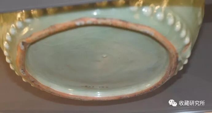 34、泡黄浆:宋官,哥瓷,在清水中泡上一天,清水会产生黄色的,较混浊的感觉,如黄釉官﹑黄釉哥﹑辽黄釉﹑更显。疑是金丝与黄釉中的铁氯化合物被水解。没见有仿。![]()