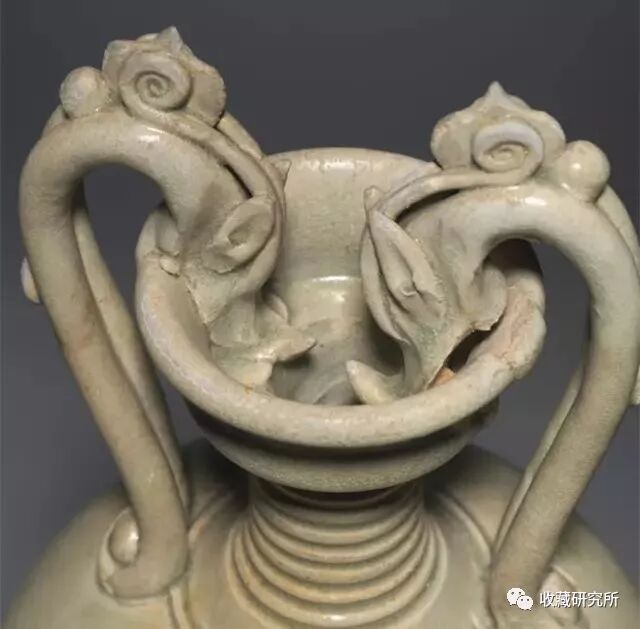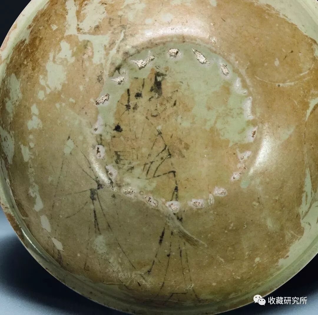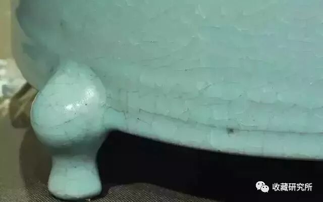 唐代侈口秘色瓷碗,印上的仕女图,1987年法门寺唐塔地宫出土31、蟹爪纹:较多的出现在汝瓷上,是釉面开裂,裂缝上串有多个小气泡,后又被污染成黑色,故形象地称蟹爪纹。难仿。这也是判定古瓷的一个重要特征。![]()