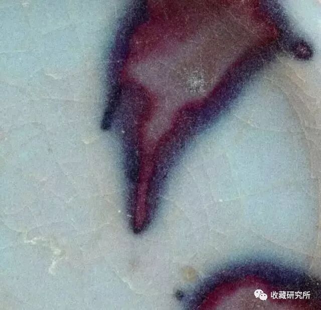 23、炸线:因胎中含有小颗粒过烧石灰,其膨胀﹑力度有限,只能炸出一至几道线,看线纹,可知过烧石灰的所在。24、炸瓷:因胎中含有大颗粒的过烧石灰,膨胀,而炸开瓷器。一般是炸裂成大缝,很少断裂.究其理,炸瓷的过程是几十年,上百年的缓慢过程.没见有仿者。25、脱落斑:釉泡破裂,摩擦时,破裂的残体聚在一起,被人感知.无仿者。摩擦的前后,釉面在放大镜下观察,有较大的变化。古瓷因经年久风化,也经不住人手的摩擦。26、活流纹:北宋钧瓷特有的现象。后人仿不出,只能造出牛毛纹。似流水,又似流沙;活流纹中的色彩绚丽,在放大镜下看,很美,诱人。另现代工艺仿的活流纹,纹路也太粗了。![]()