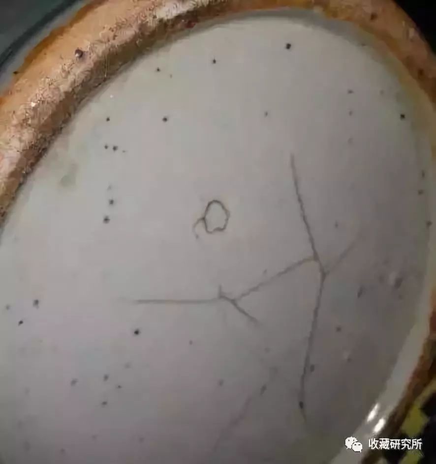 2、破泡:是指釉面的气泡,因年久风化,硅胶化,经清洗,摩擦而产生的破裂,一般看到的是釉面上层的破泡,釉面损伤太严重时,才见到中下层破泡;宋瓷上,会有此现象,难仿。如在破泡里找到臭干黑或黄水斑,就可判定为古瓷一个依据了。![]()