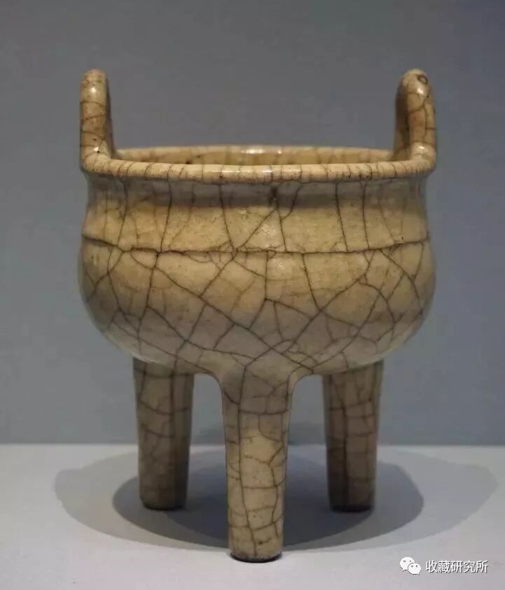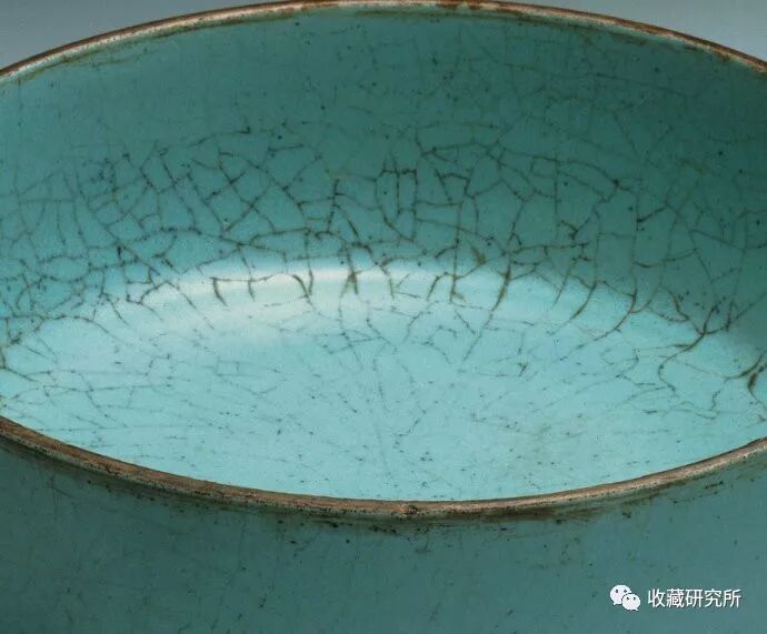 43、龟裂纹:如龟壳的裂片,大片。古瓷龟裂纹片缝大,色黑。以汝瓷为最显著。缝色是窑后形成的。千年前形成的必有管状片缝迹象。目前无人能仿出,也无人知晓这一特征。无著作论及。近百年面世后出的,多无色,与现代仿品差别不大。![]()