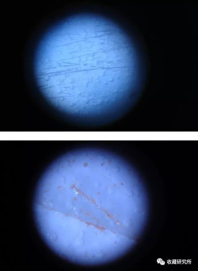 30、陈附迹:有机物千百年来堆附挤压古瓷上,而留下的痕迹。可以洗掉,须多次。陈附迹,一般是指有机物的痕迹。如衣服的陈迹,食物的陈迹,以及腐坏的纸张和毛发等。![]()