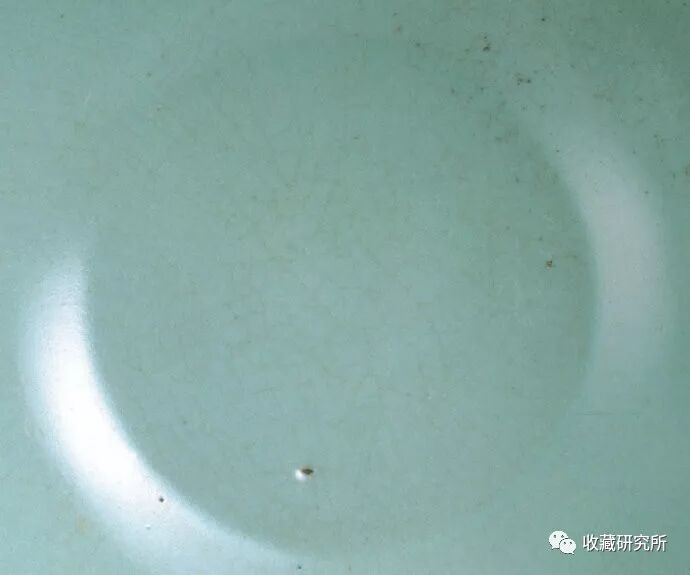 84 、绿点:在汝窑的支钉里会出现,名称叫辉绿岩的,耐高温,耐酸的矿物体,呈亮绿色。有了它,才能使支钉小如芝麻。目前的仿品生产者,尚不知道绿点的功效,故而仿品的支钉过于粗大,而失神韵。据推测,绿点也不单纯靠物理方法研细,古人是并用了道教炼丹术,及化学方法。![]()