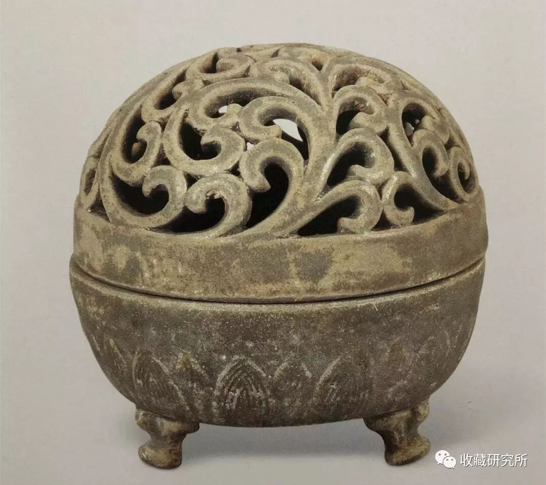 南宋 青釉卷草纹香熏,1974年江西省鄱阳县磨刀石公社出土 通高7.3、口径7.2厘米 江西省博物馆藏53、烂坑:几百年前就被开启过的,其内有机物体已无法辨认的。其内一般只存有陶瓷器,少数小件杂项、烂坑所出的瓷器曰“烂坑货”、烂坑货的特征比较明显,也是面世量大的一种,其关联词汇量也多。如:土沁、树根斑、草根须、黄水斑、臭干黑、土香气、脏气、陈酸斑、水流痕、水银沁、玻璃胶、脱落斑、浮蜡、百年蜡、吐筋线、陈附迹、蟹爪纹等。![]()
