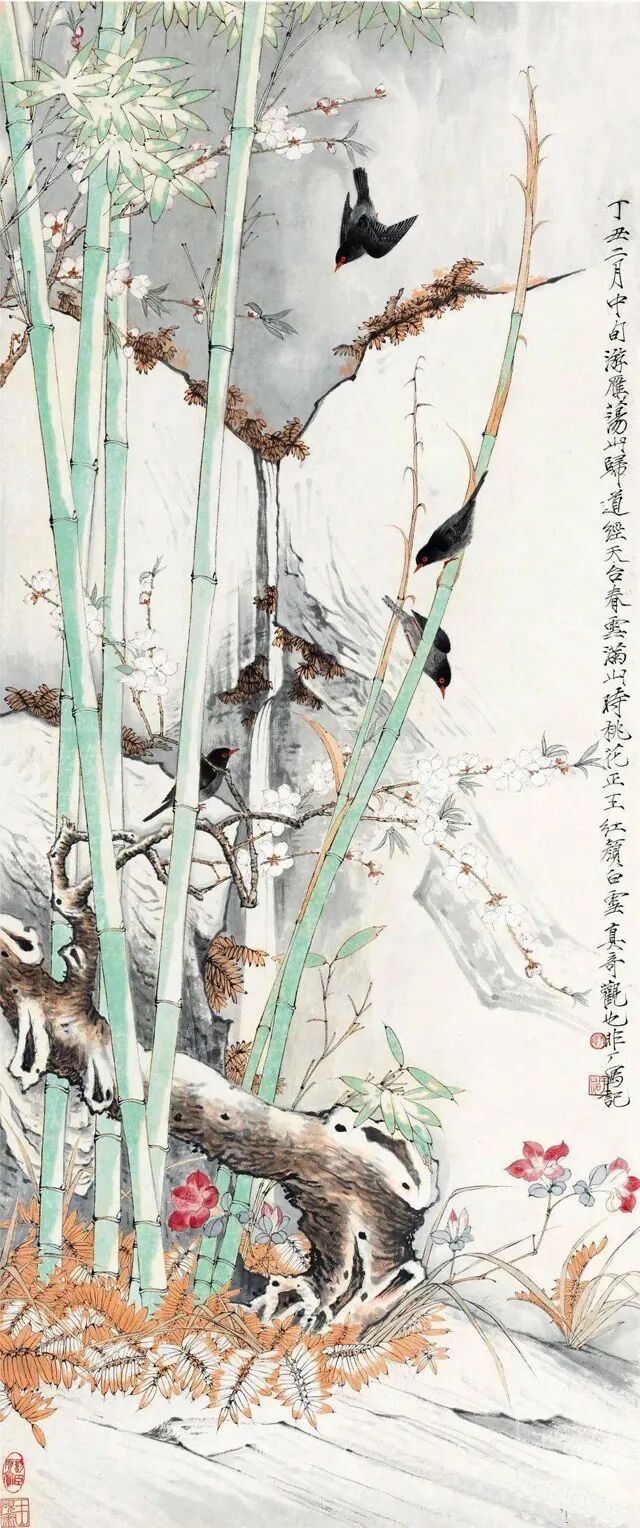 两个黄鹂鸣翠柳,一行白鹭上青天。