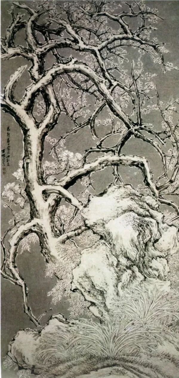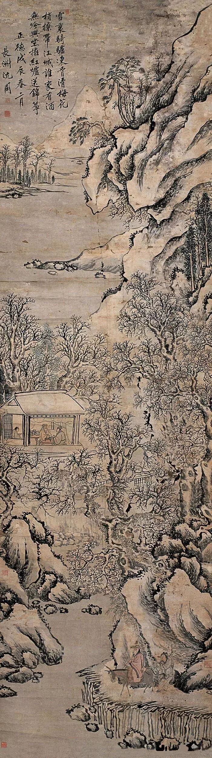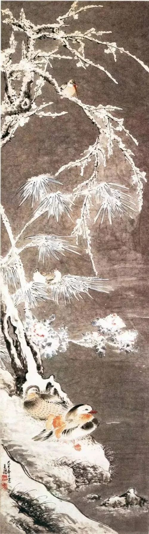 岭梅谢后重妆蕊,岩水铺来却结冰。