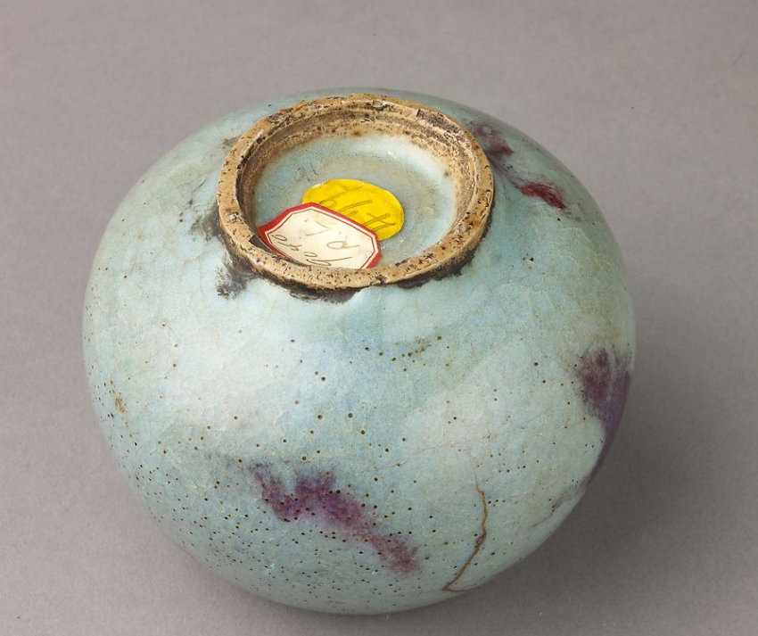 钧窑天蓝釉鸡心盖罐罐底