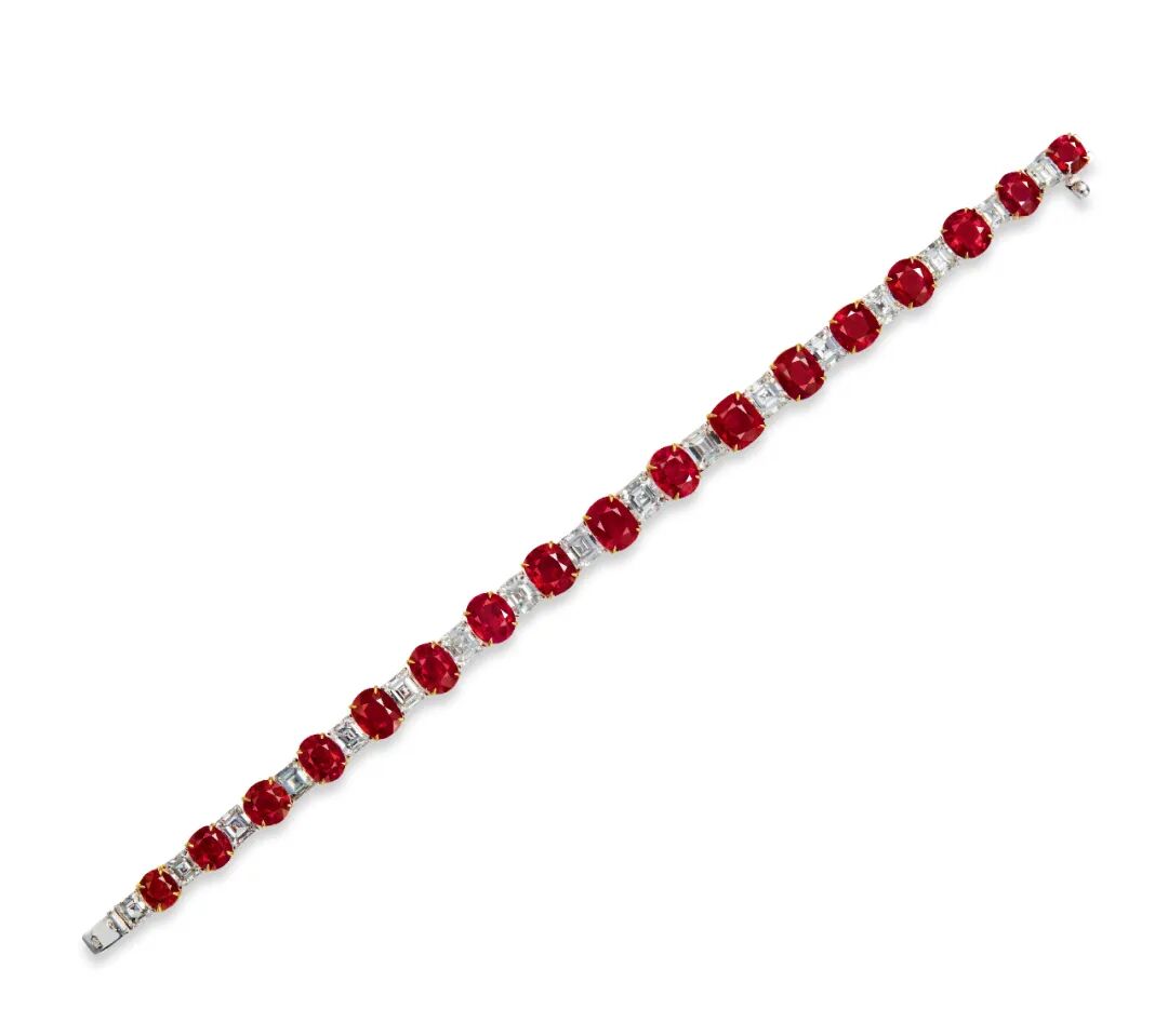 总重19.24克拉缅甸「鸽血红」红宝石配钻石手链,未经加热