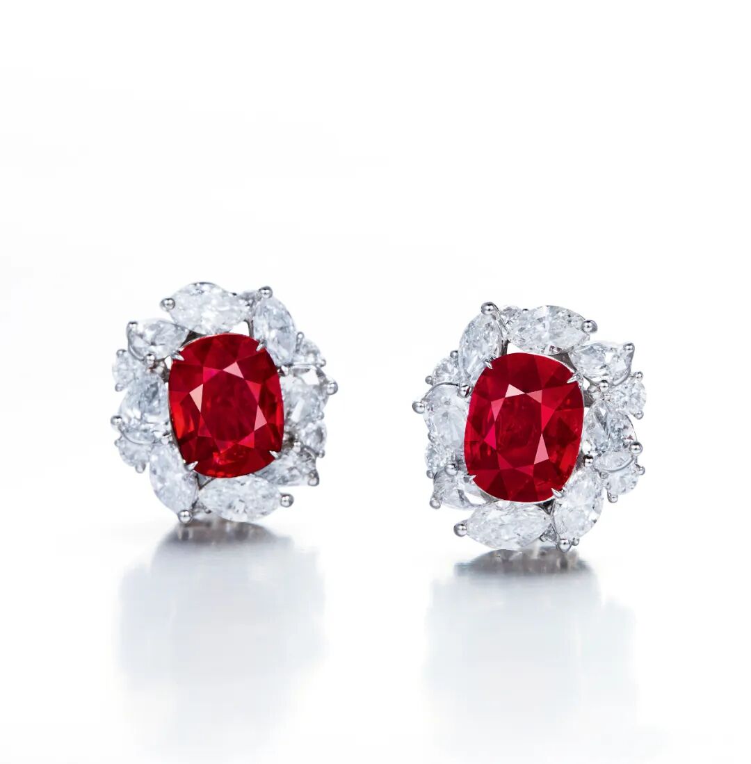 3.42及3.01克拉缅甸「鸽血红」红宝石配钻石耳环,未经加热