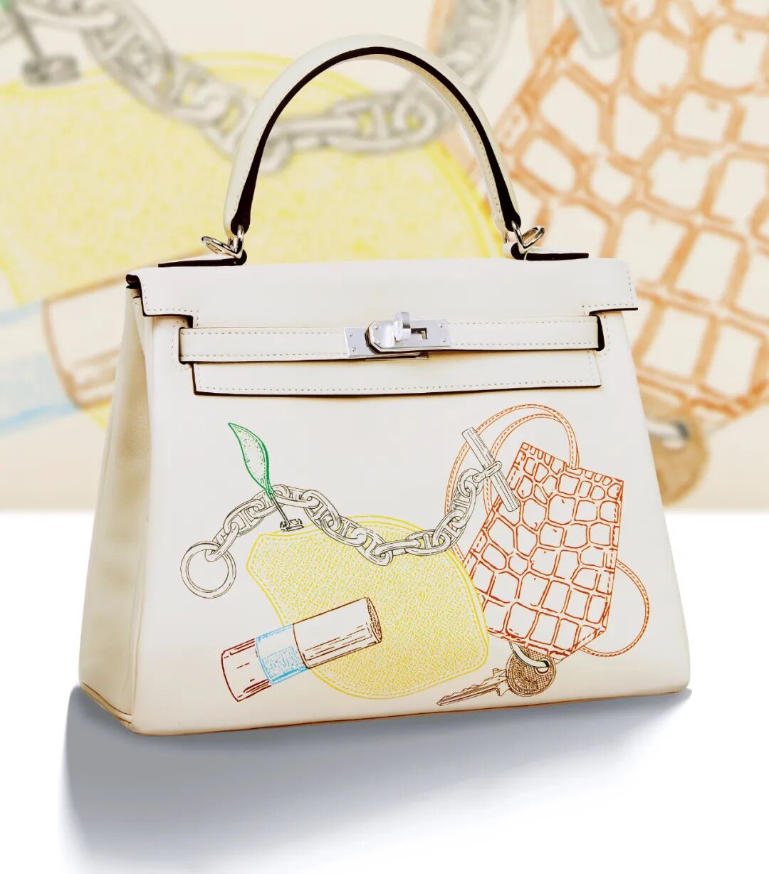 限量版 奶油白色SWIFT牛皮25公分IN AND OUT彩绘